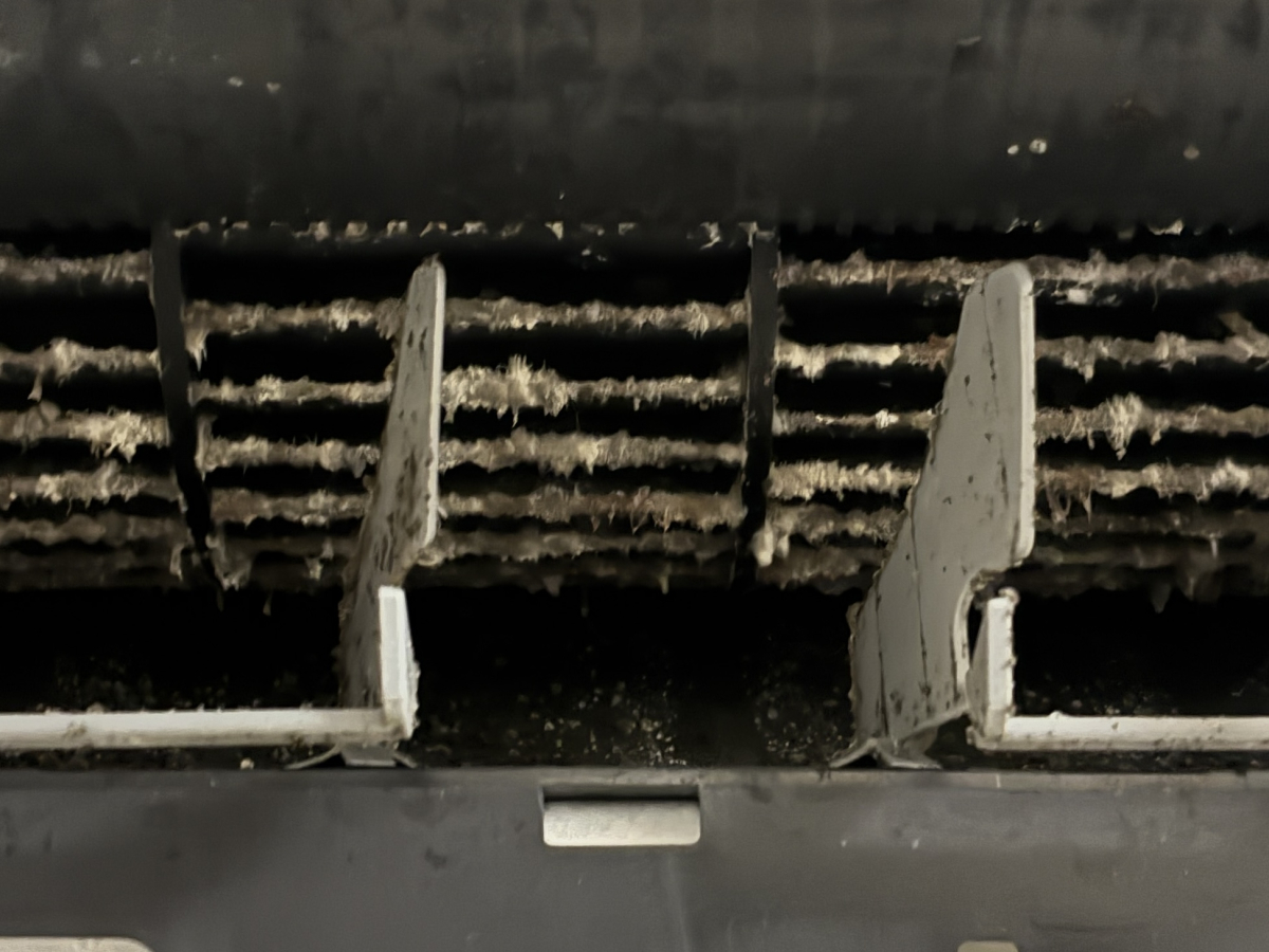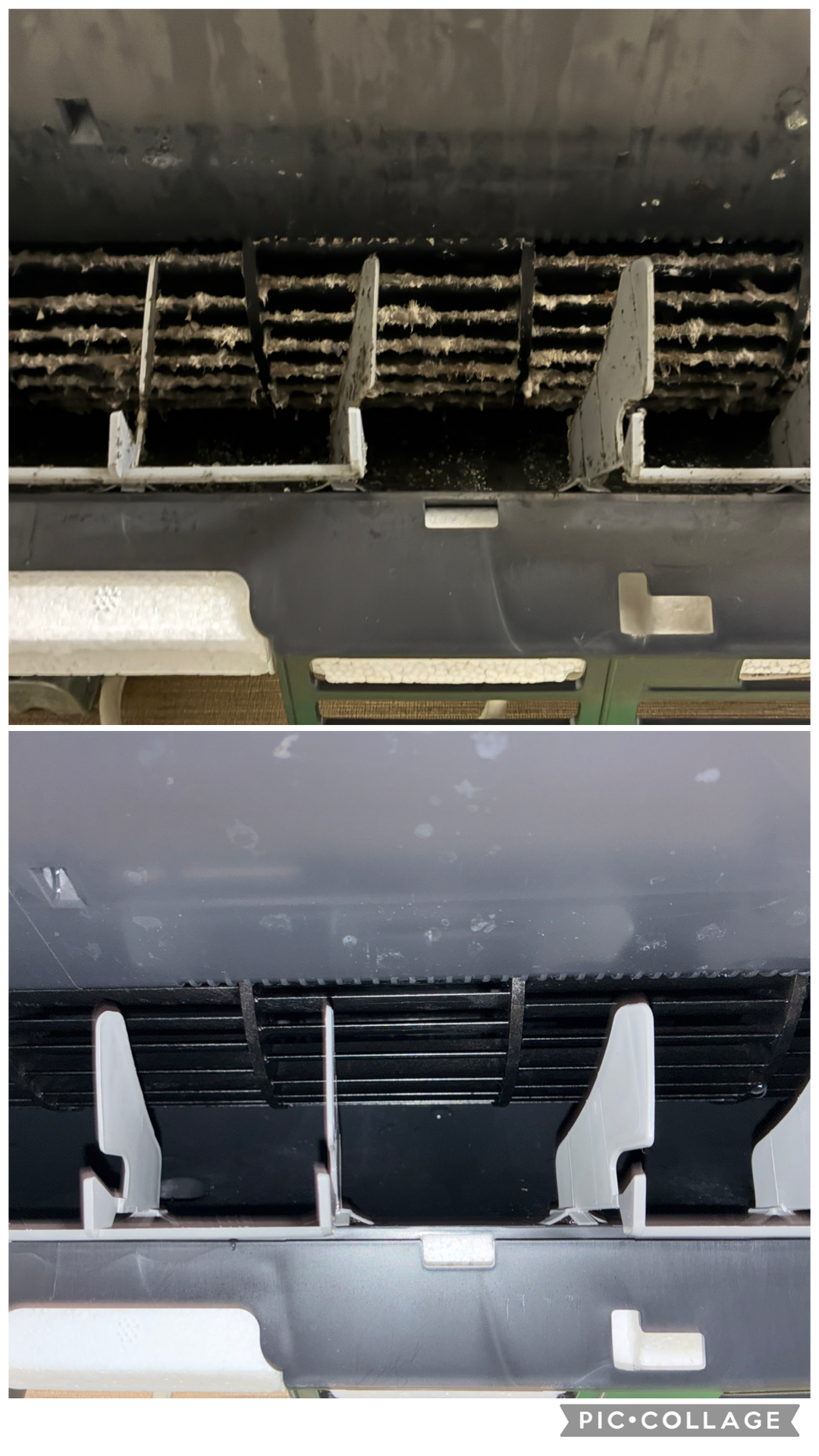 送風口や、風向版なども見えない側に黒い汚れがついていきます。。。