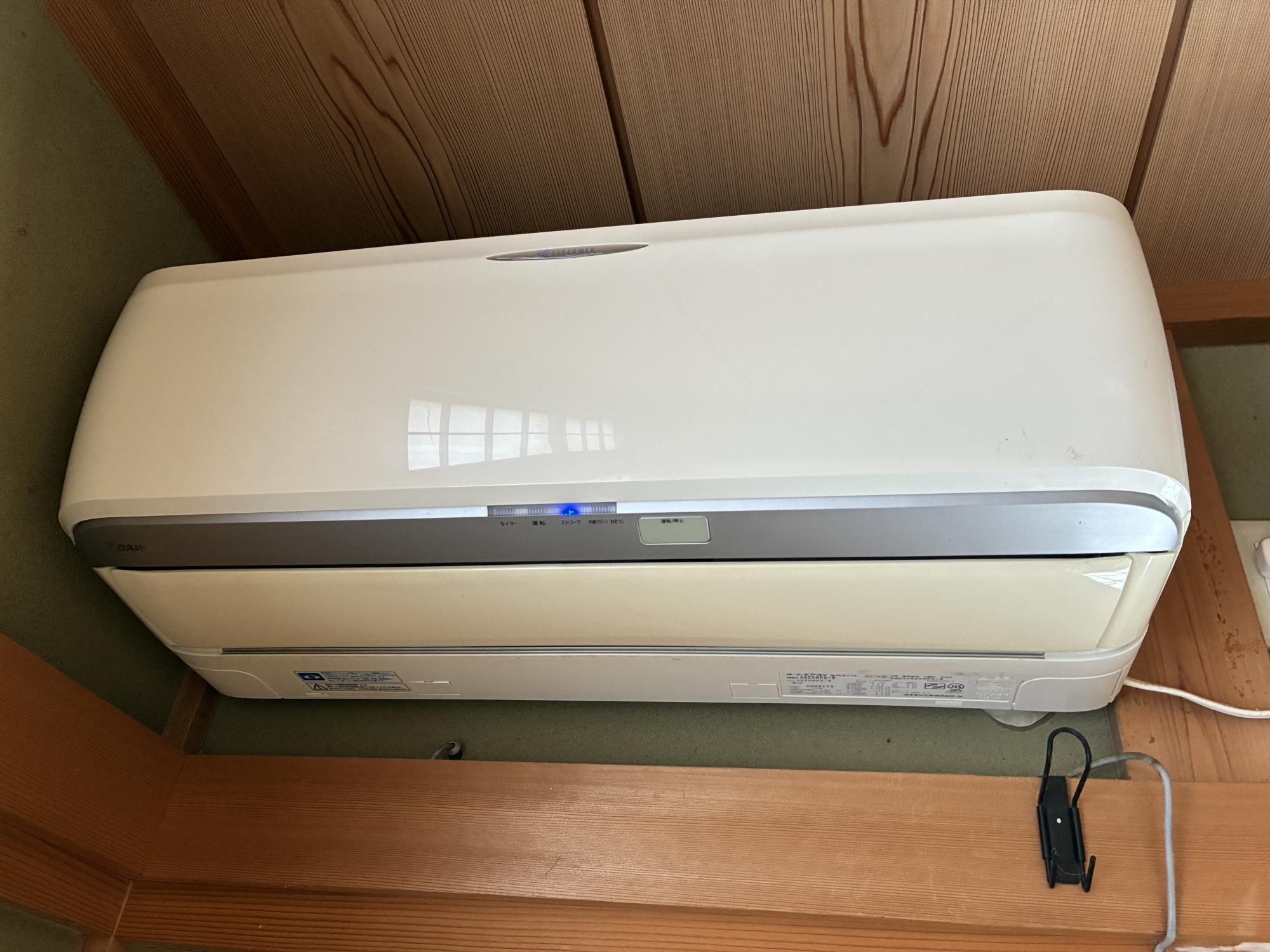 エアコンの「お知らせランプ」が点滅していて消し方がわからないから見て欲しいという内容でした。
