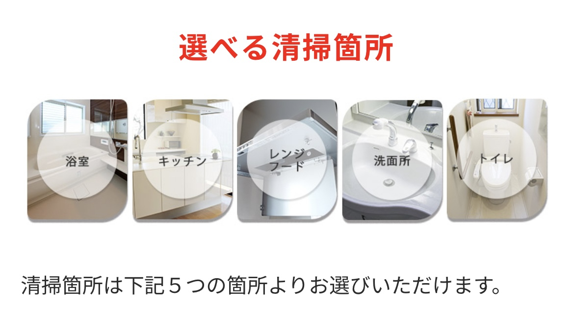 対象箇所 ①浴室 ②キッチン ③レンジフード ④トイレ+洗面所(またはトイレ+トイレ)
