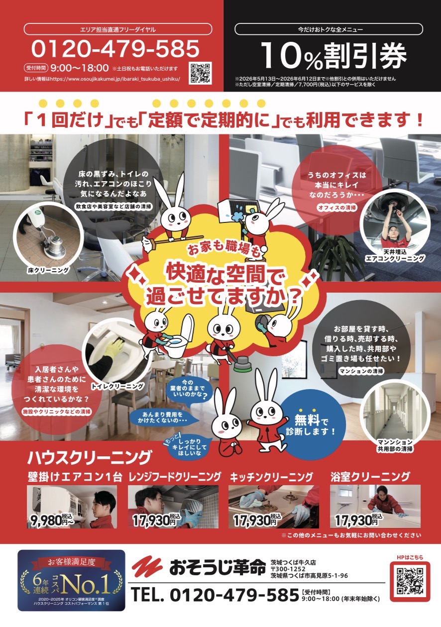 ハウスクリーニングをお考えなら、ぜひ「茨城つくば牛久店」にご相談ください。