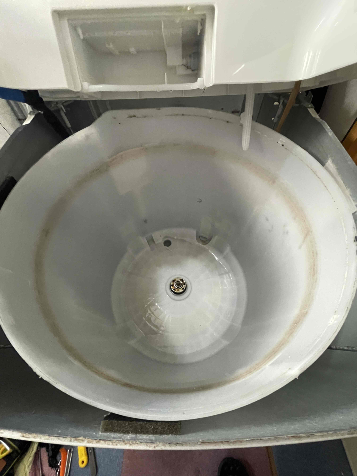 洗濯槽を取り出します。ドキドキ、あれ?3年経過してますが埃は多いが汚れが少ない・・・