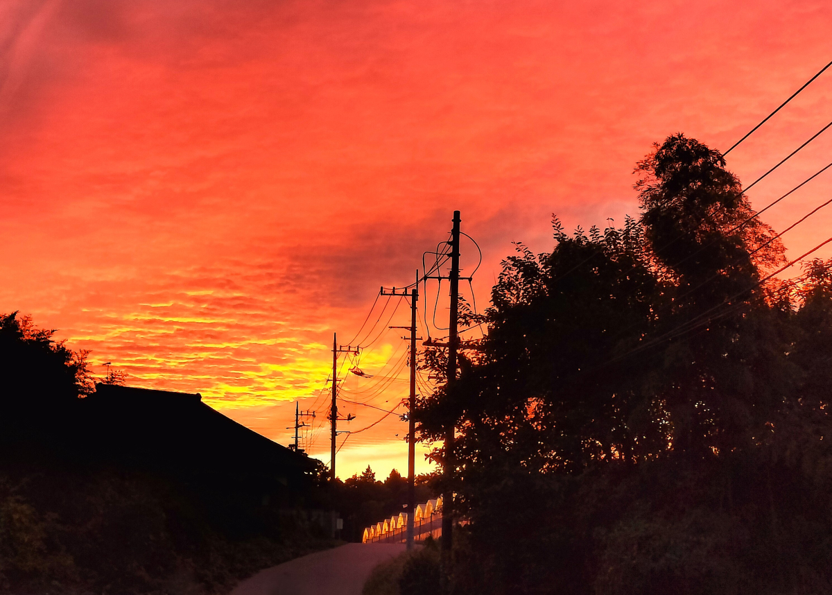 掲載の写真は、仕事後に見えた爆焼けです~♪