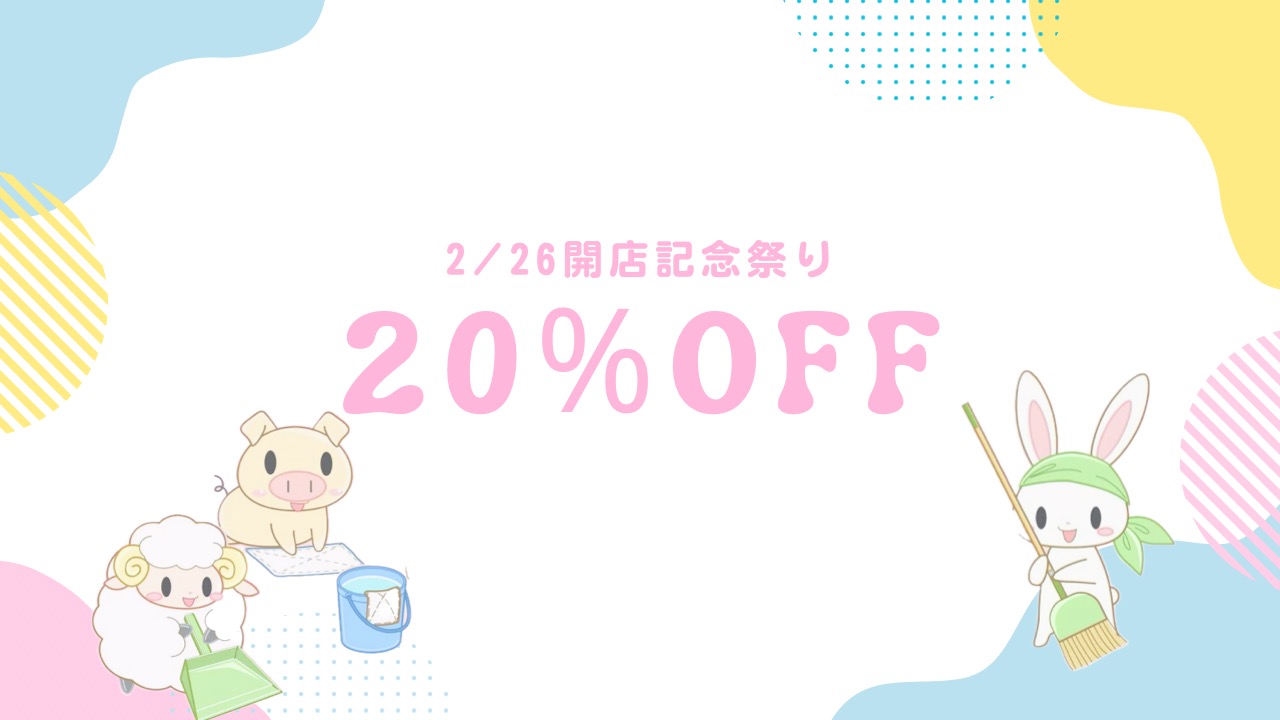 開店日から3ヶ月間限定で、全てのご依頼を20%オフで提供いたします!