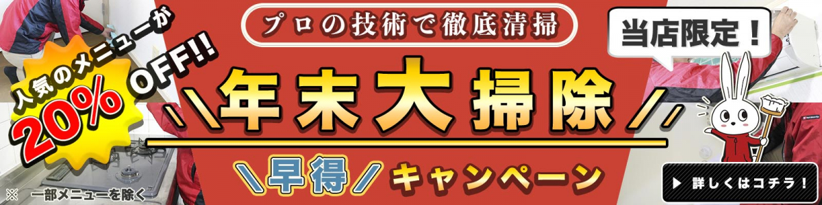 年末大掃除早得キャンペーンを実施中!! 期間限定でハウスクリーニングがなんと20%割引!!