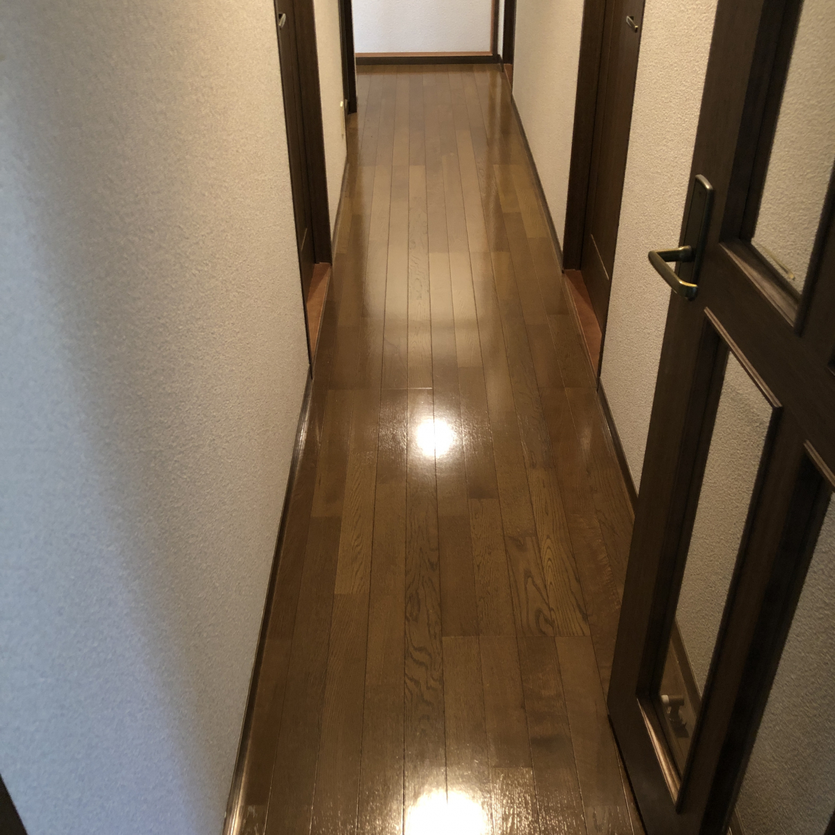最後に廊下から玄関までかけていき、乾燥させて完了です!!