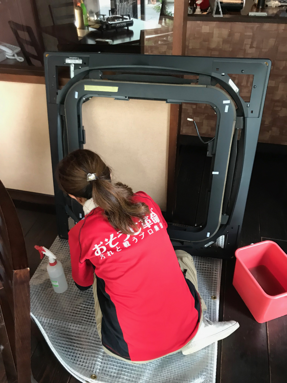 細かいパーツを外したり、大きな機材を使ったり、水がかかってはいけない所をしっかり守ったり、、と