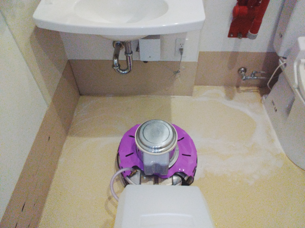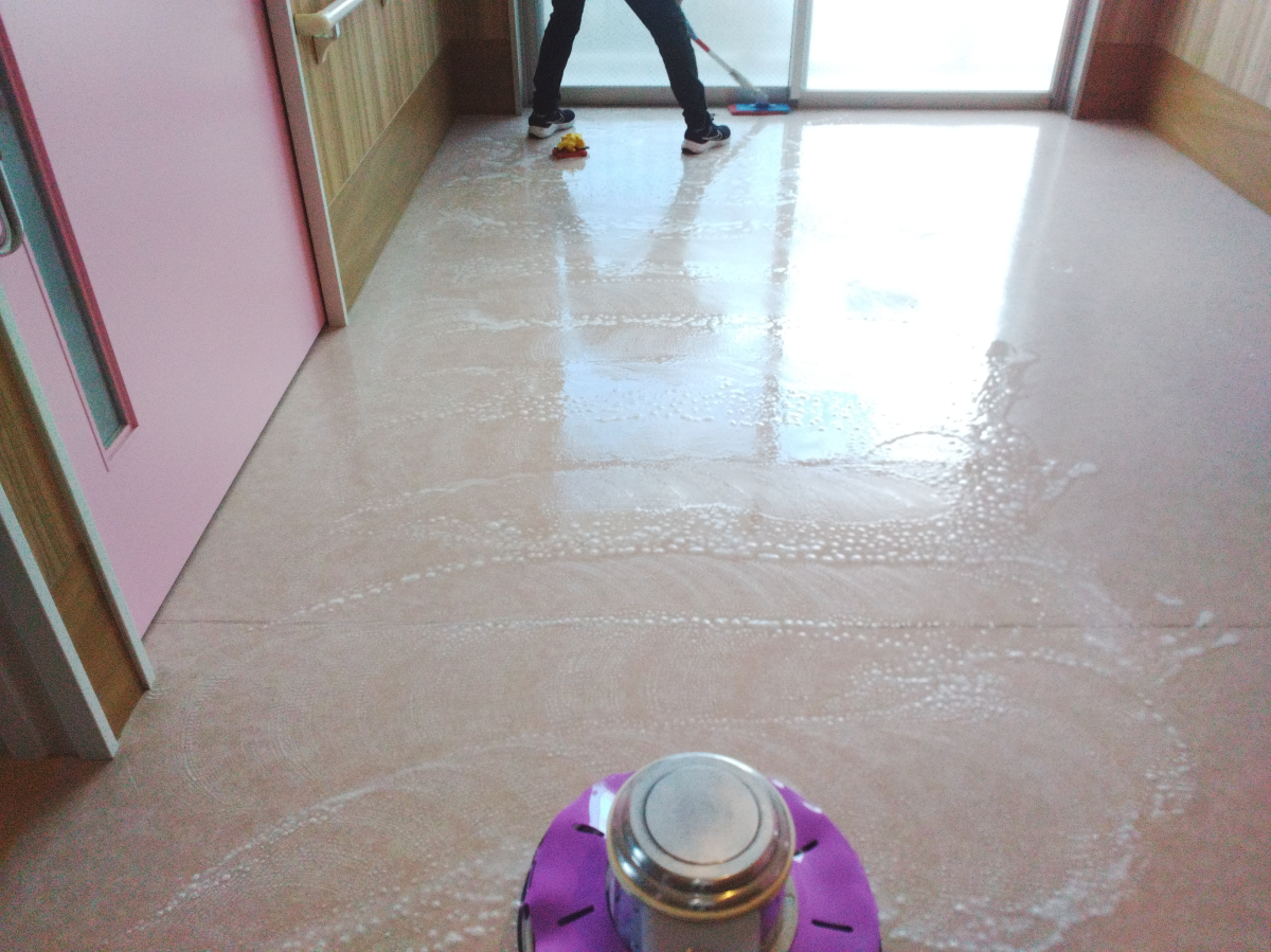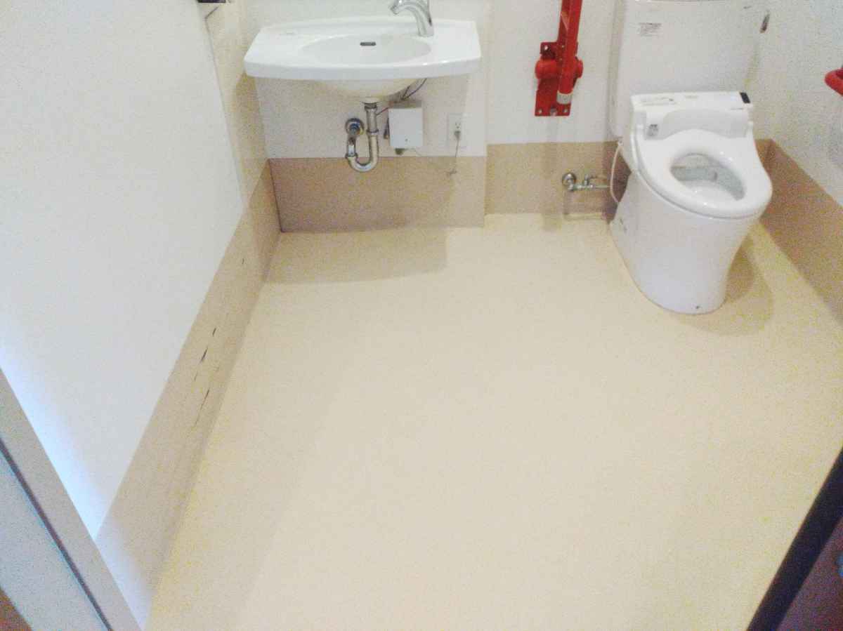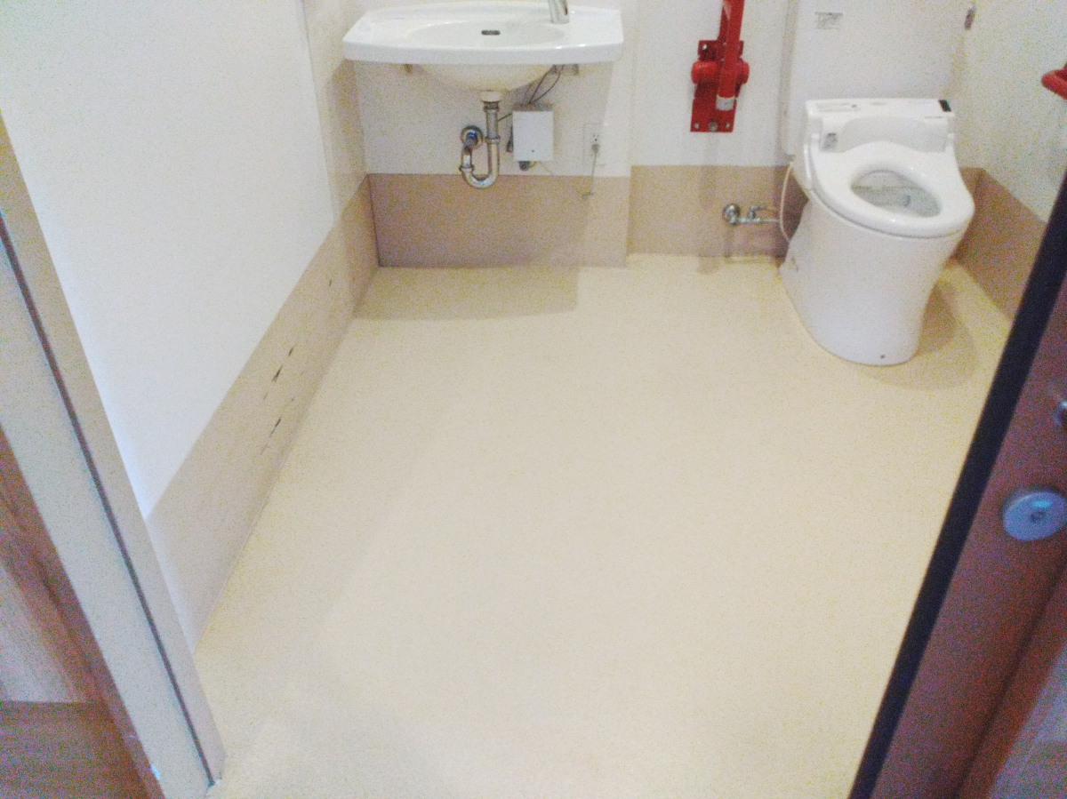 廊下をポリッシャーで洗浄し、ワックスを塗布致しました。トイレは、ポリッシャー洗浄を行いました。