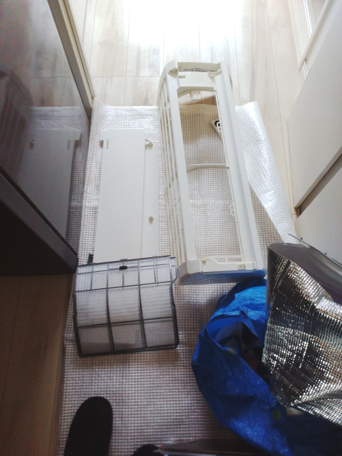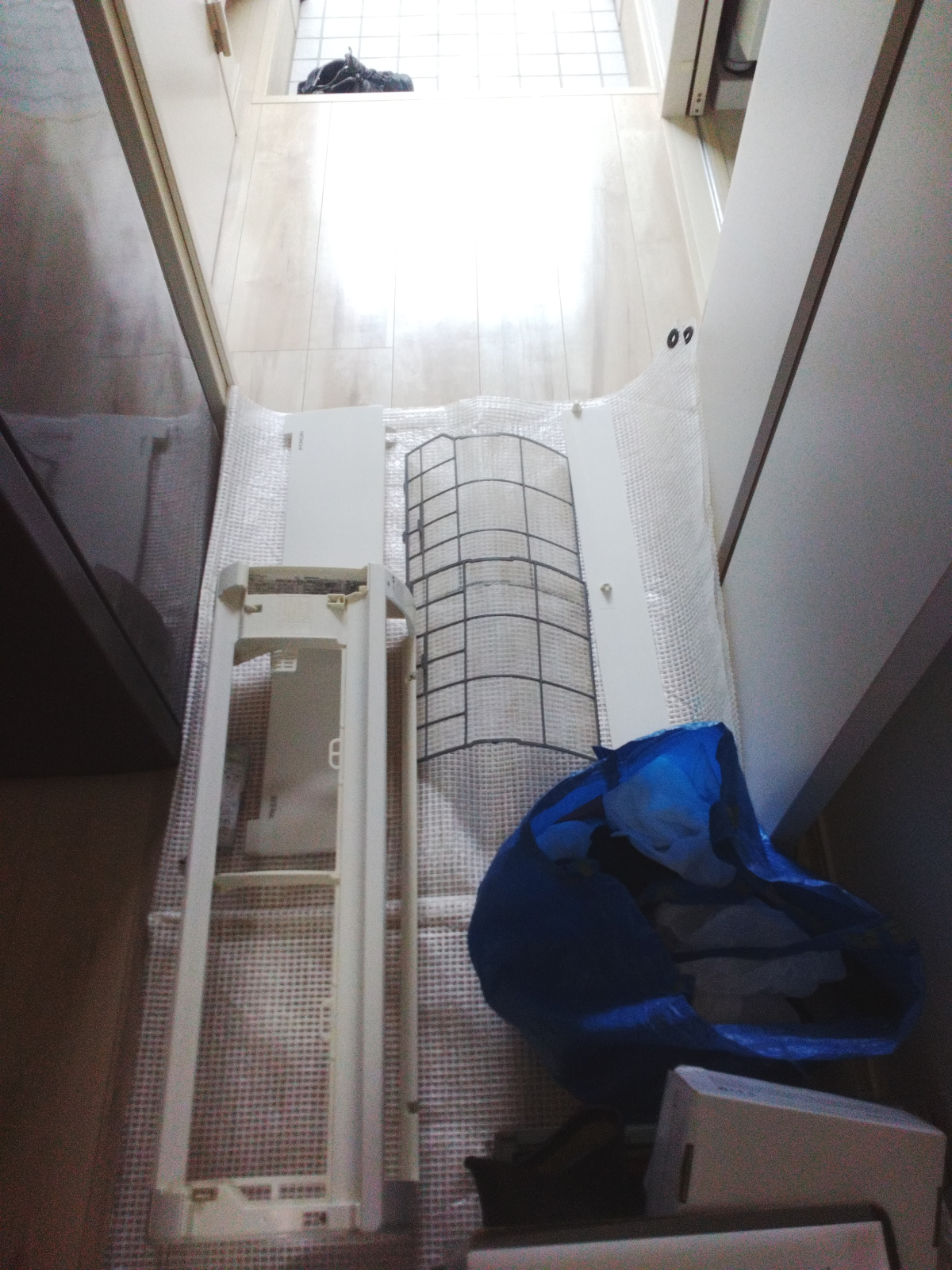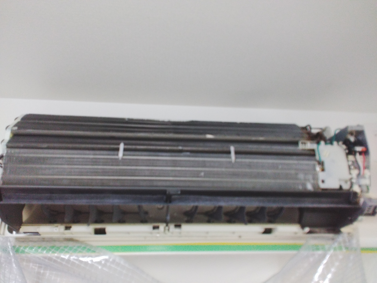 リビングに設置のエアコンのため、油汚れもあり、念入りに高圧洗浄し、汚れを落としました。