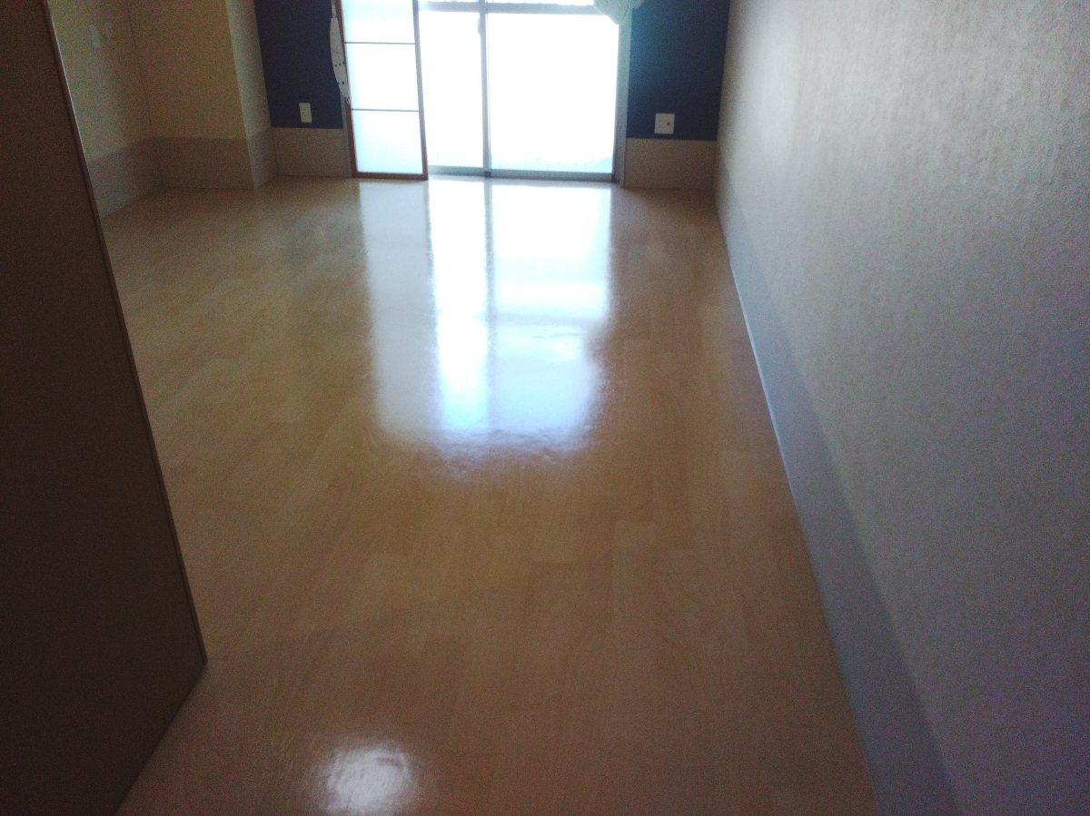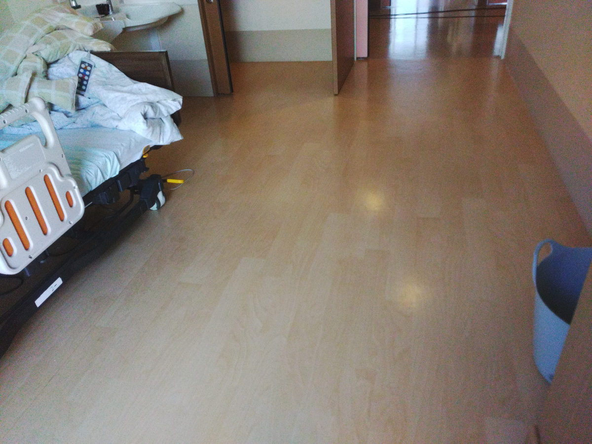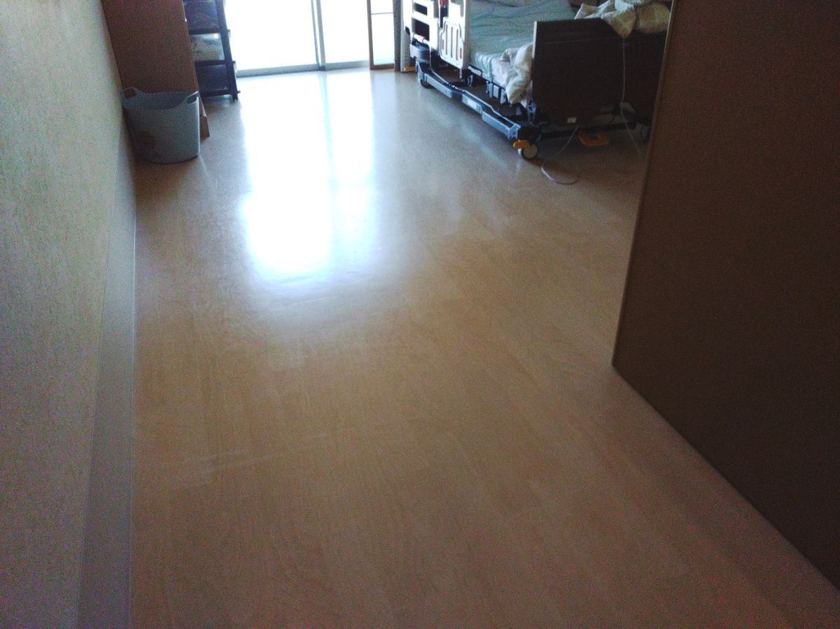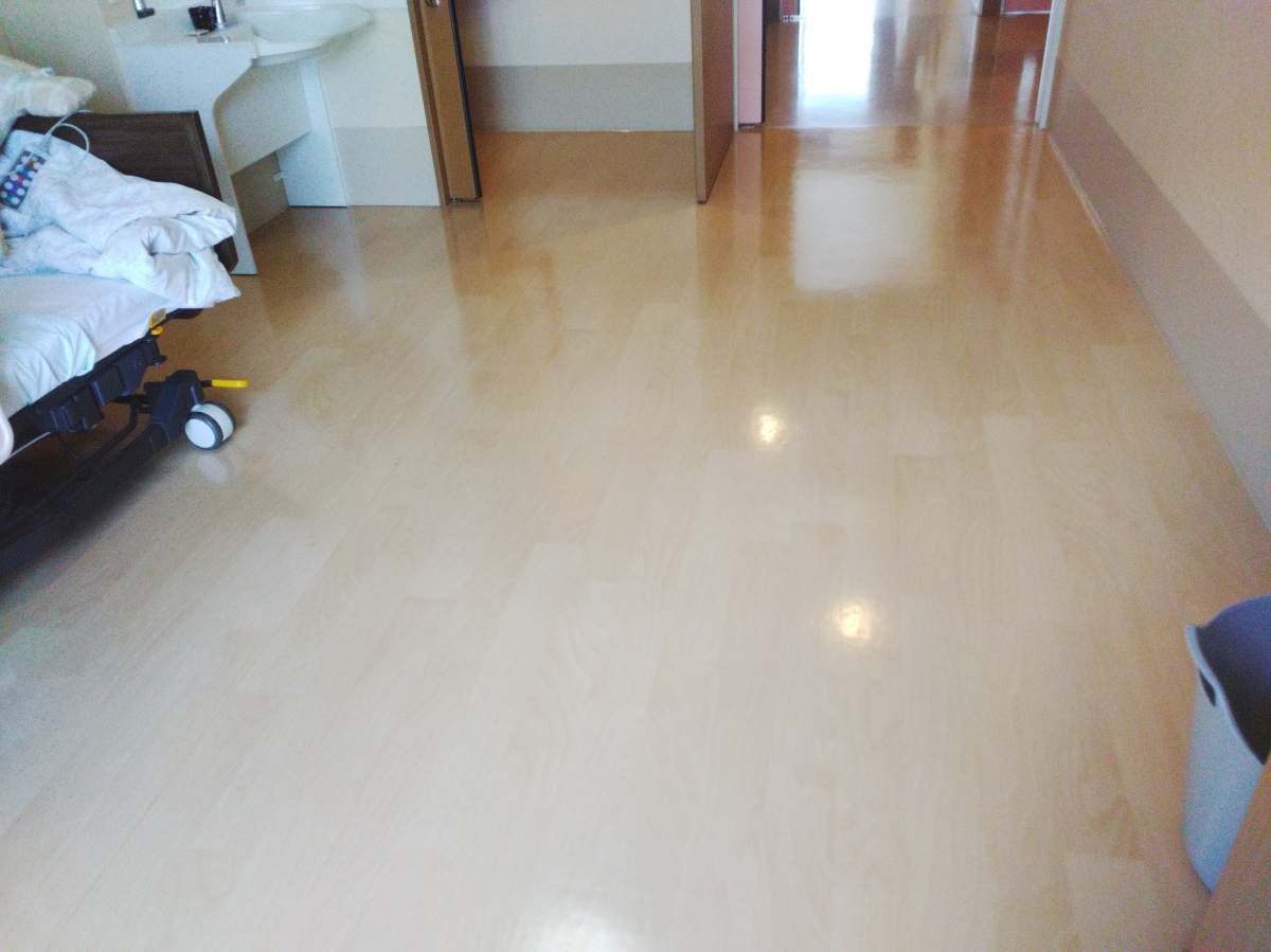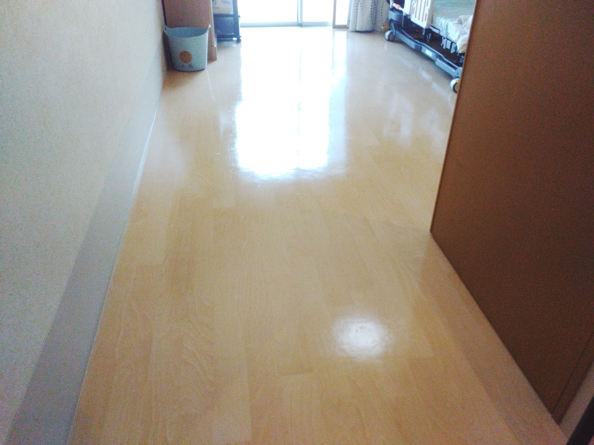 居室等の床面をポリッシャー洗浄し、ワックス塗布を行いました。