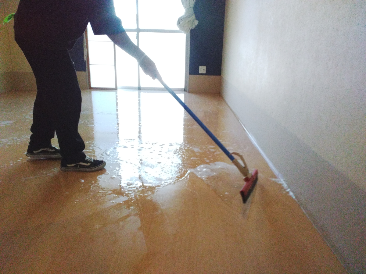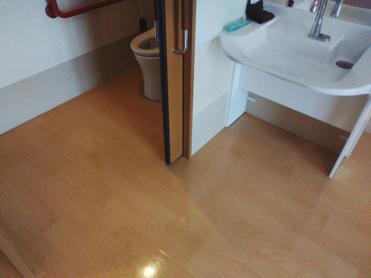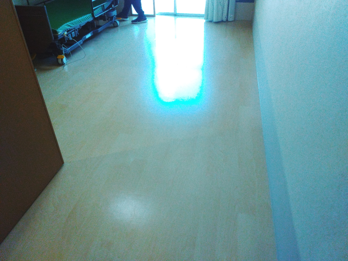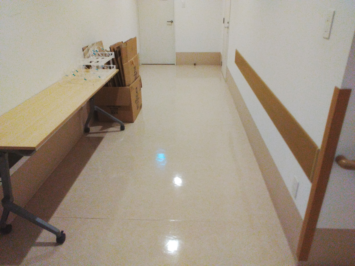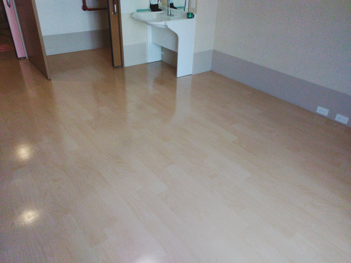 居室等の床面をポリッシャー洗浄し、ワックス塗布を行いました。
