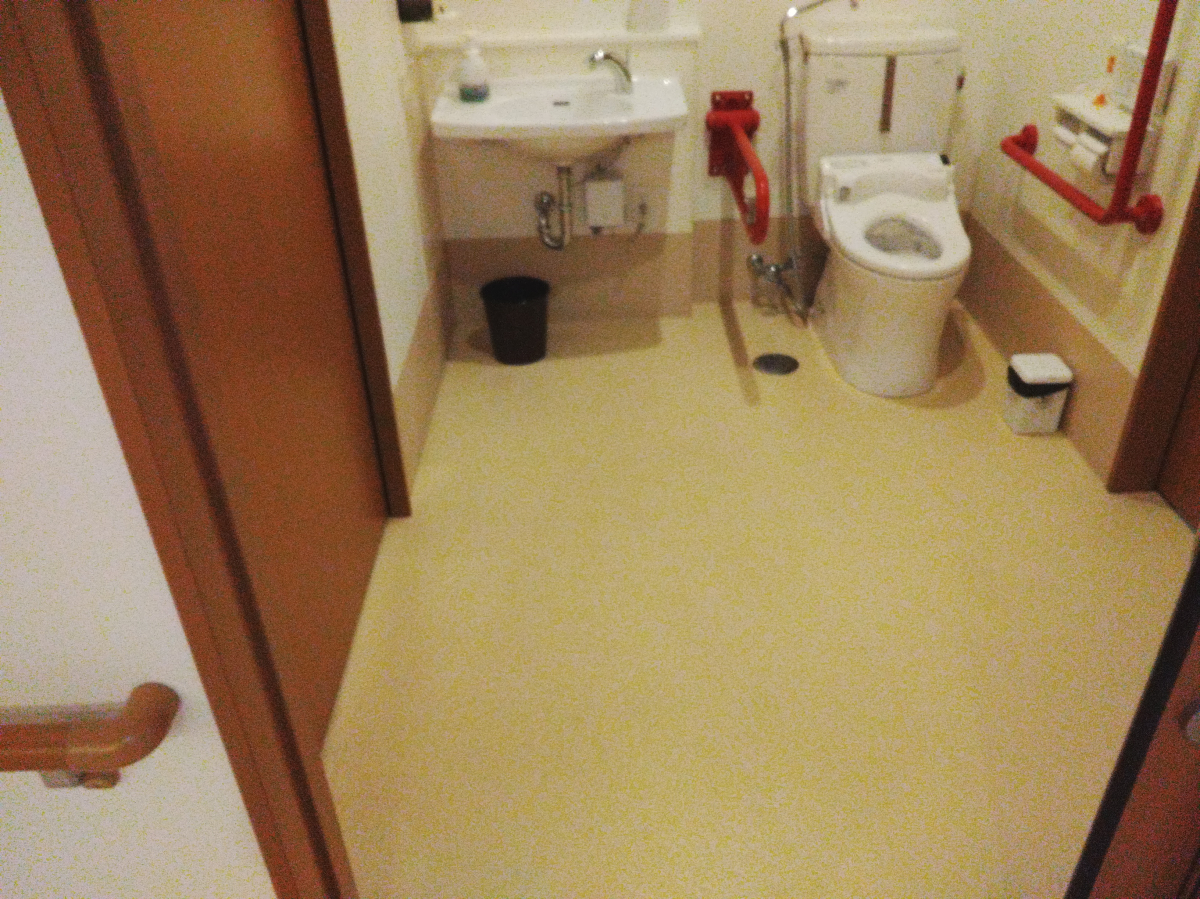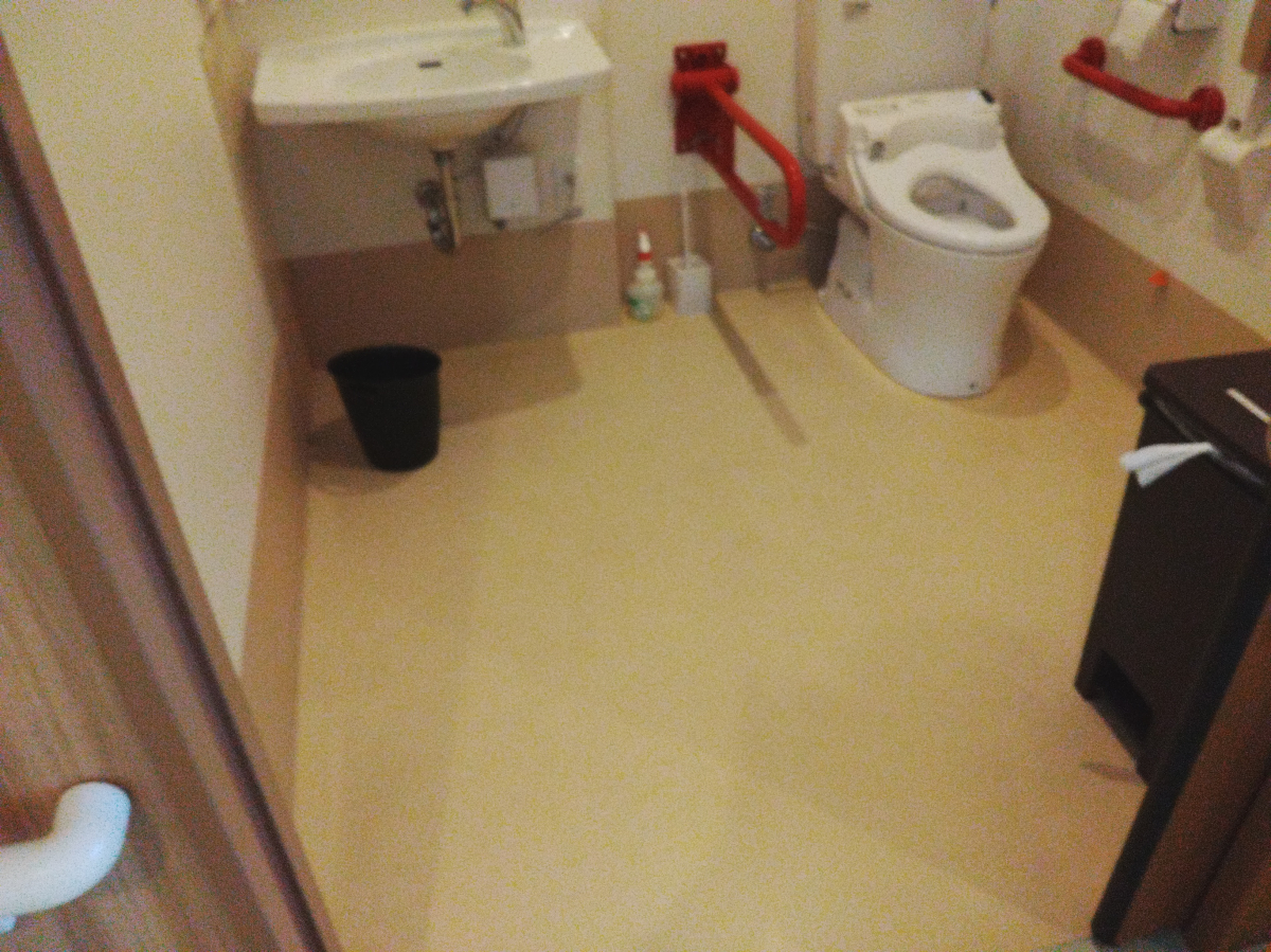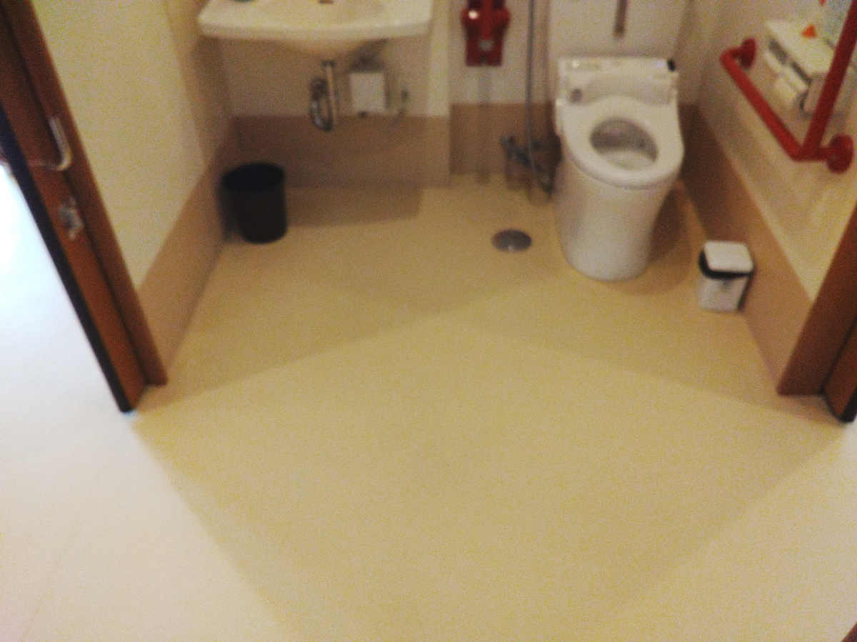 トイレ共用2か所、特殊浴室共用部、浴室共用部に関しては、床素材の関係上、ポリッシャーのみで綺麗にさせて頂きました。
