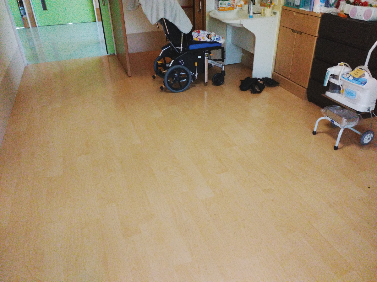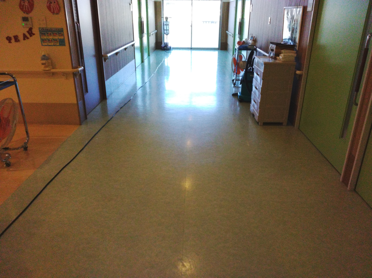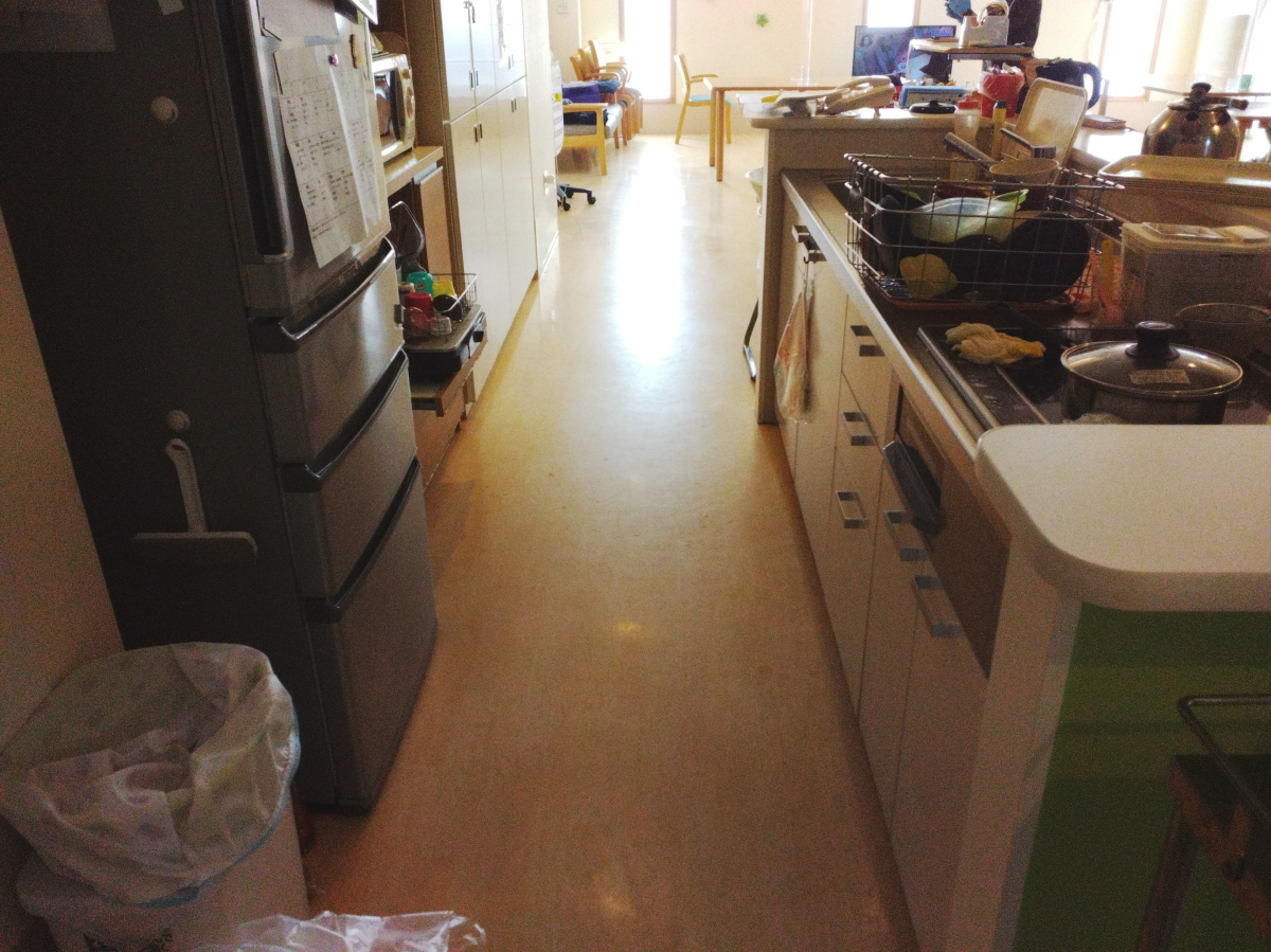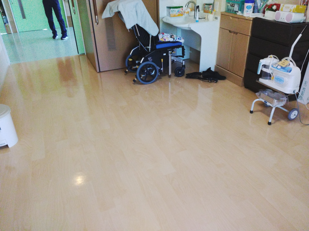 居室、食堂、廊下は、ポリッシャー使用後にワックスを塗布させて頂きました。