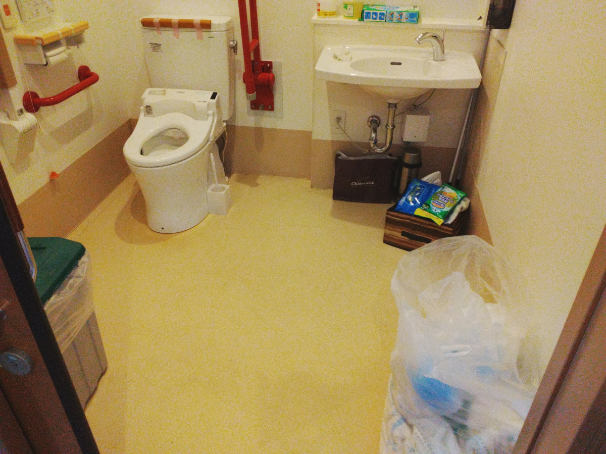 トイレ共用1か所、床素材の関係上、ポリッシャーのみで綺麗にさせて頂きました。