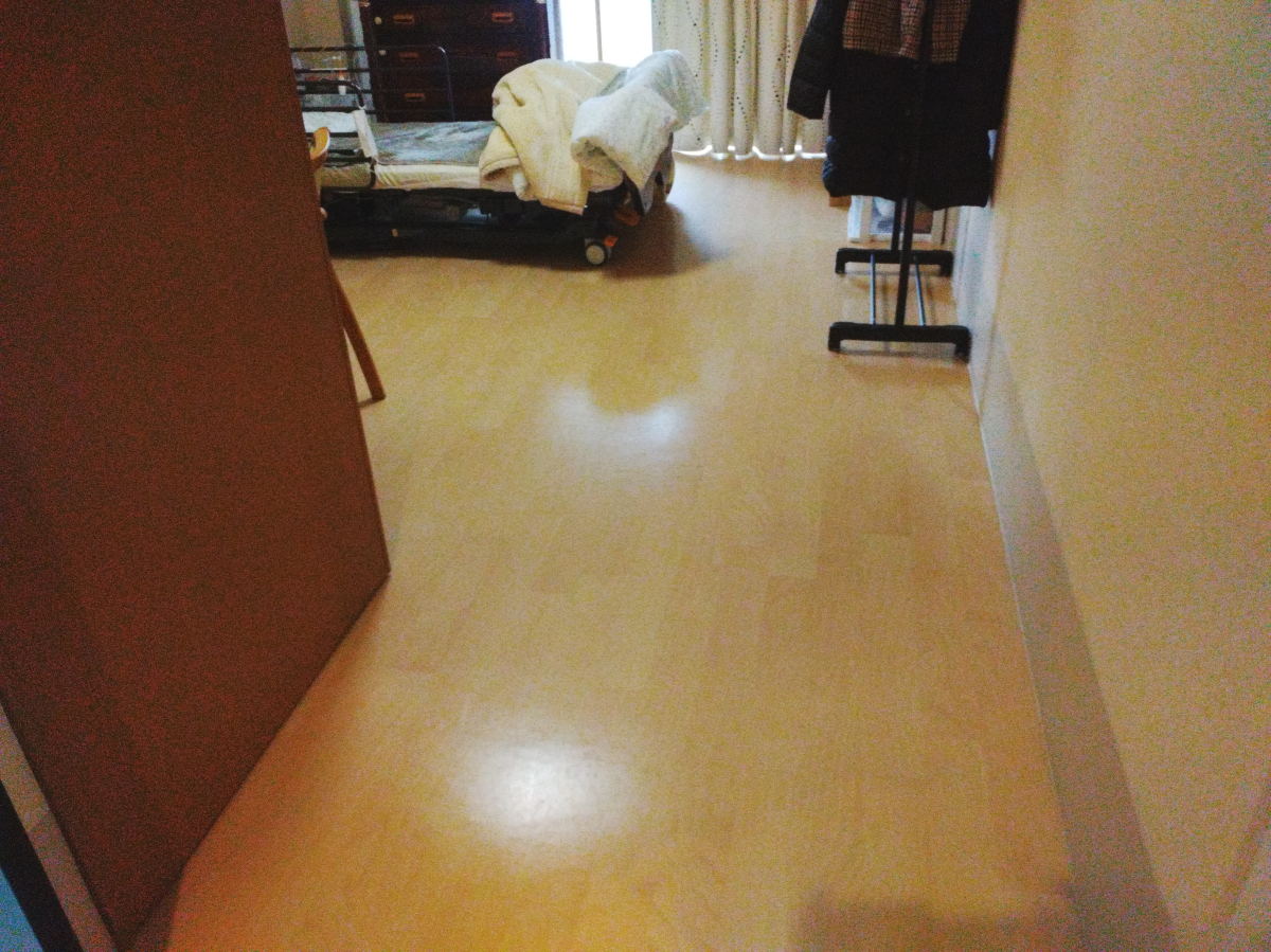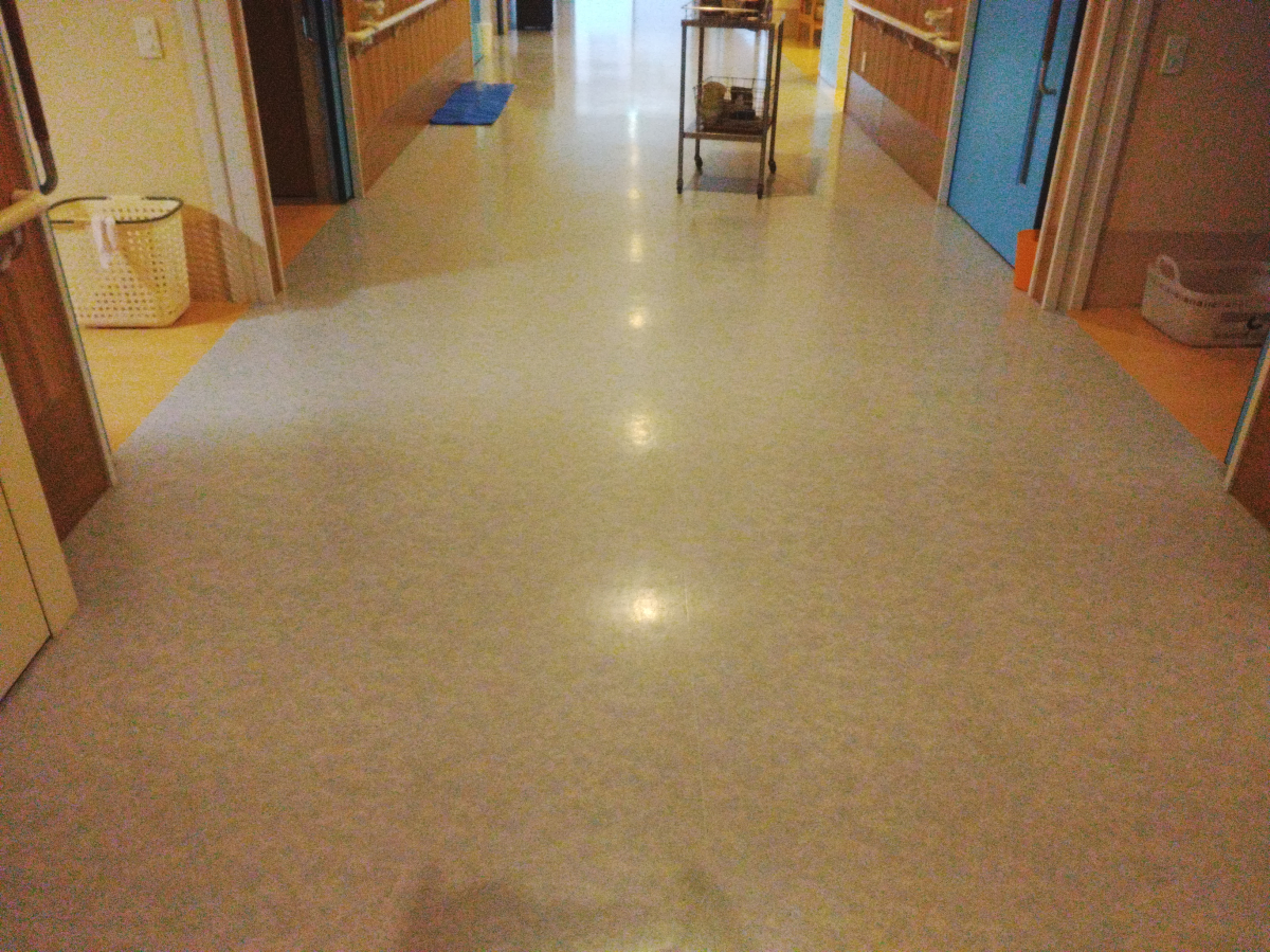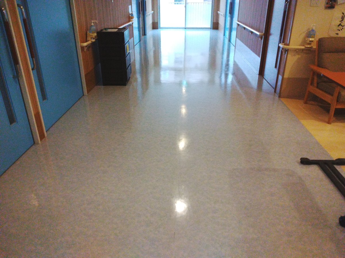 居室、廊下は、ポリッシャー使用後にワックスを塗布させて頂きました。