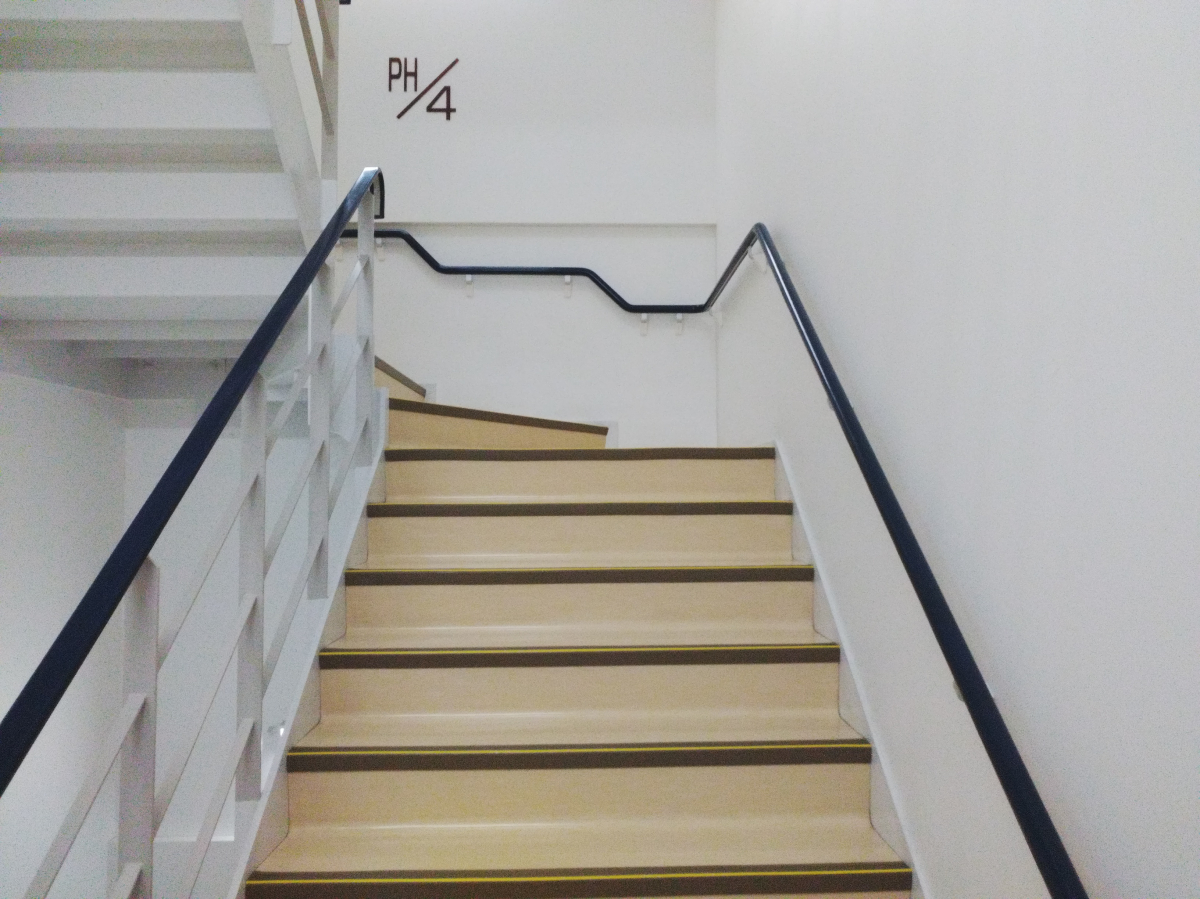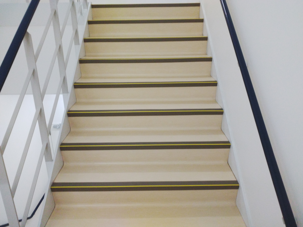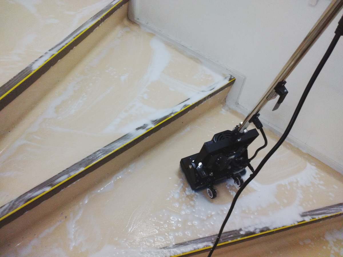 非常階段は、小さめのポリッシャーで対応させて頂き、その後ワックスをかけさせていただきました。