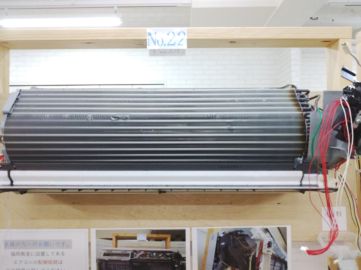 新人職員さんには、一般エアコン3台の分解組み立てと、簡易なダイキンのおそうじ機能付きエアコンの分解組み立てをしてもらいました。