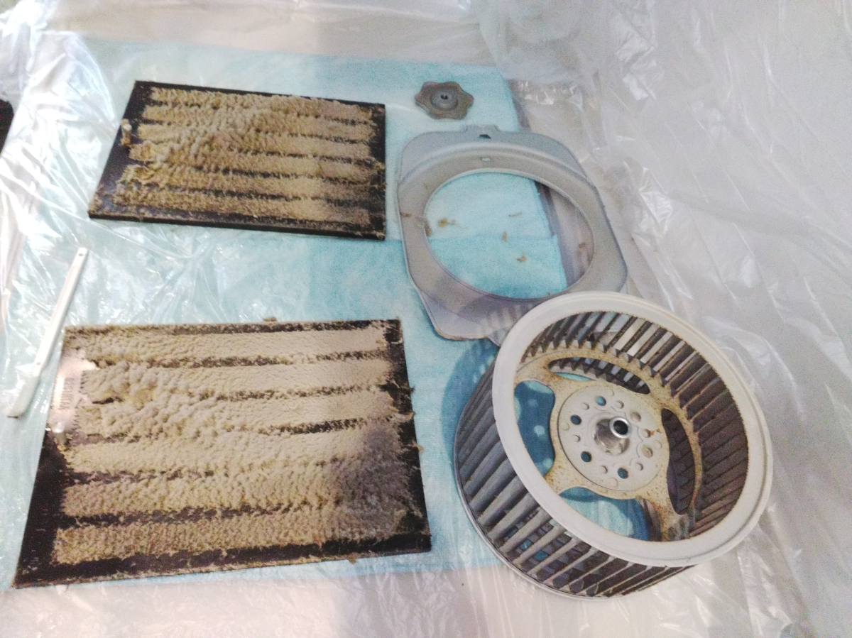 レンジフードの部品を分解して、薬剤と道具で油汚れを落とさせて頂きました。