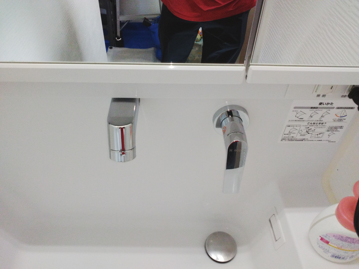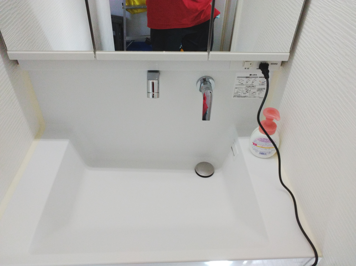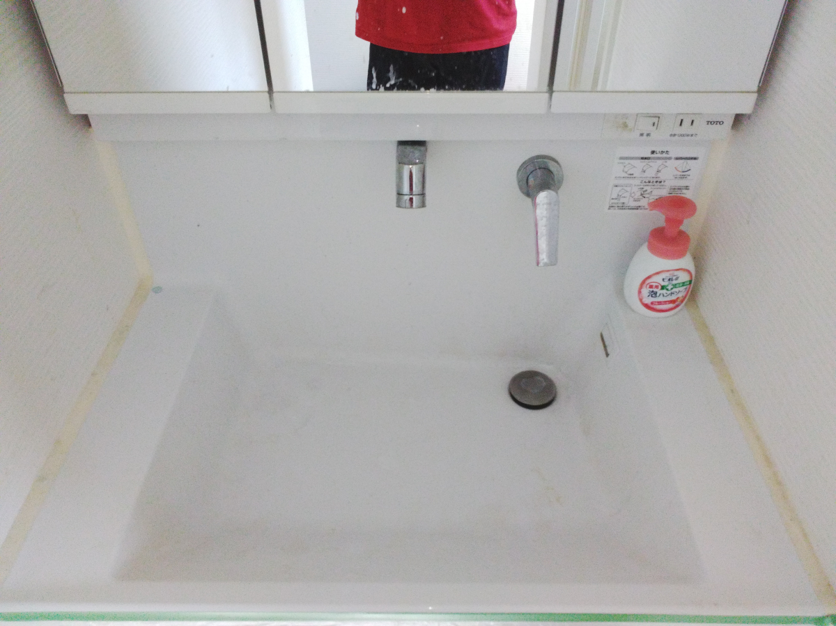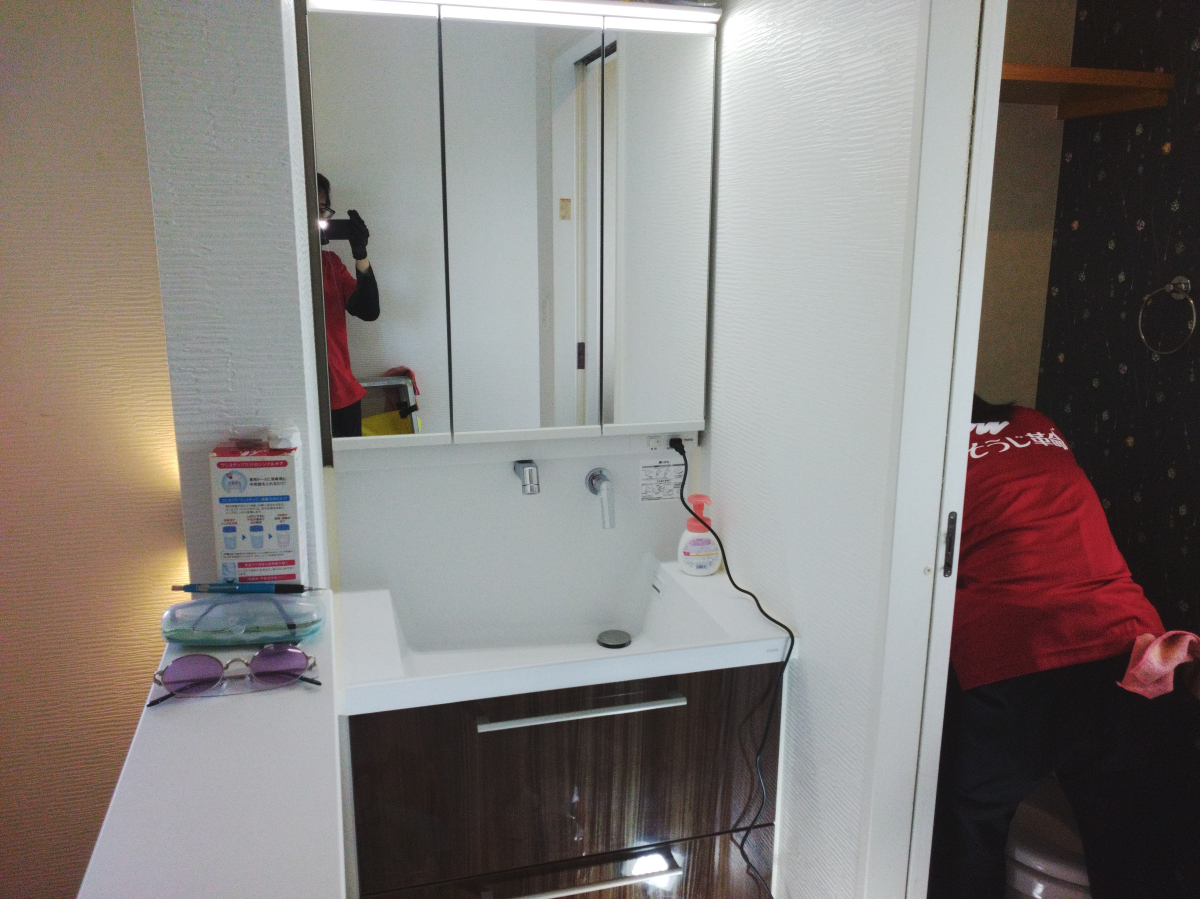洗面所は、石鹸カス汚れを落としてから水垢汚れを落とし、綺麗にさせて頂きました。