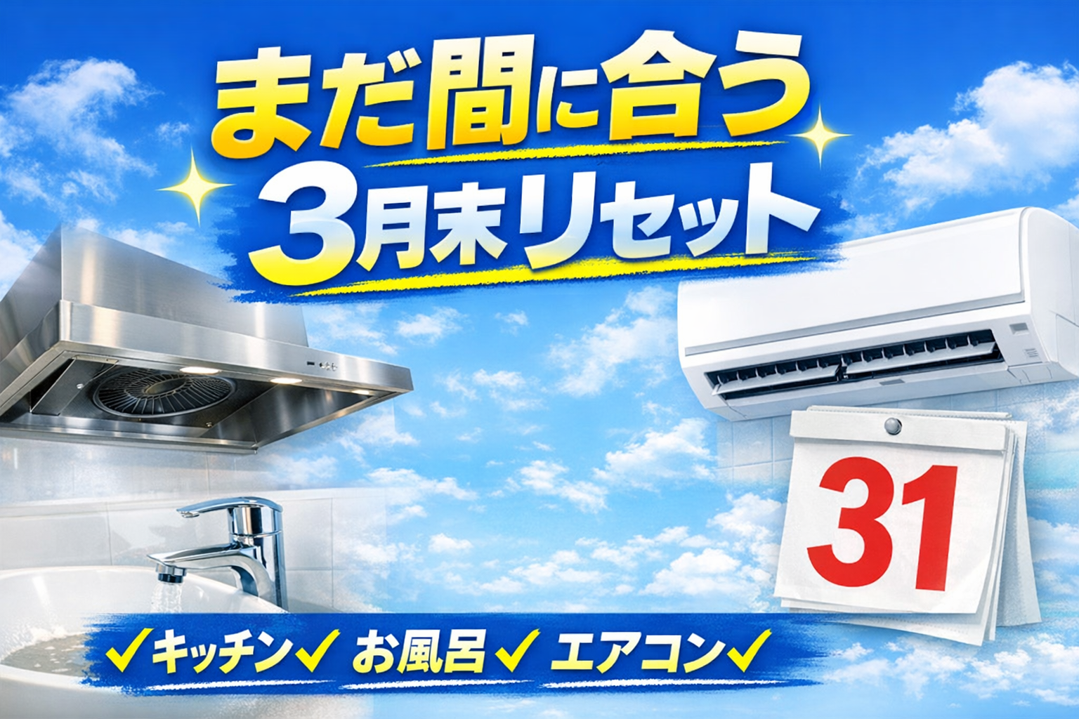 キッチン、レンジフード、換気扇、トイレ、お風呂(浴室)など汚れがご自身で落とせなくなってしまった所