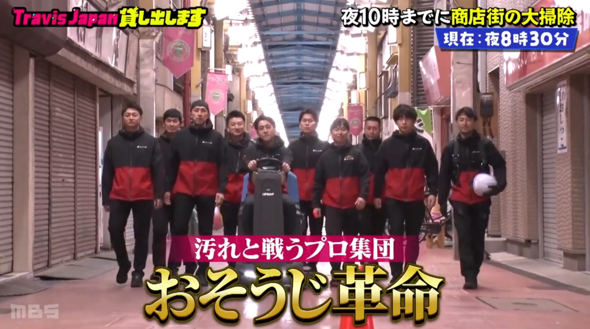 年末年始のかき入れ時を前に、商店街の頑固な汚れをTravisJapanメンバーで一掃しようという企画。