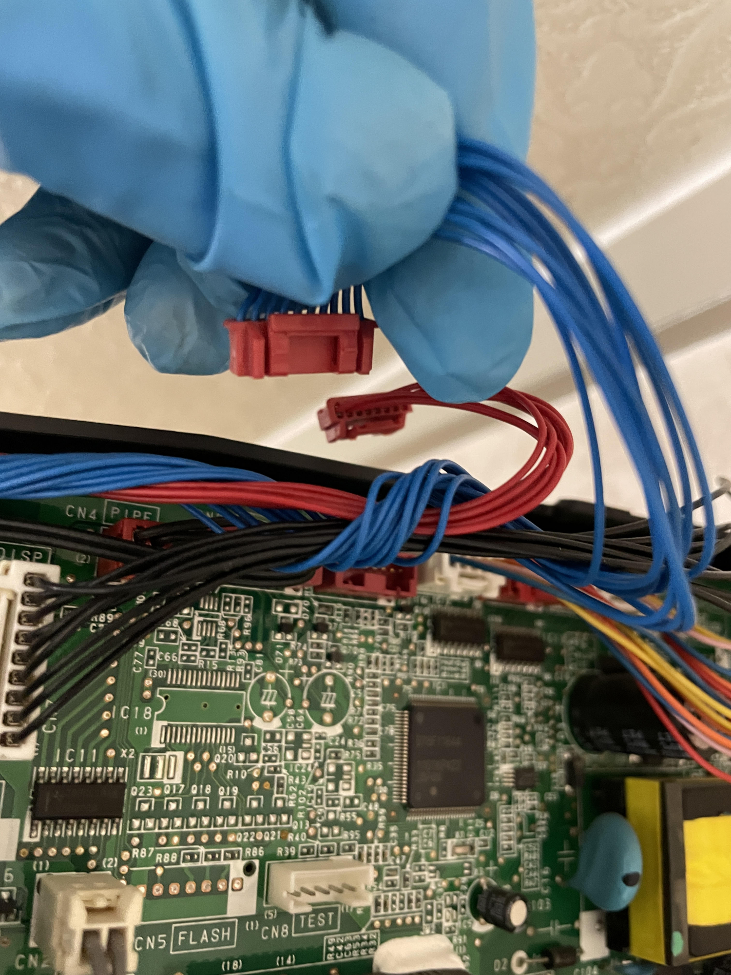 エアコンのおそうじ機能付きの配線は複雑ですが、やりがいがあります!