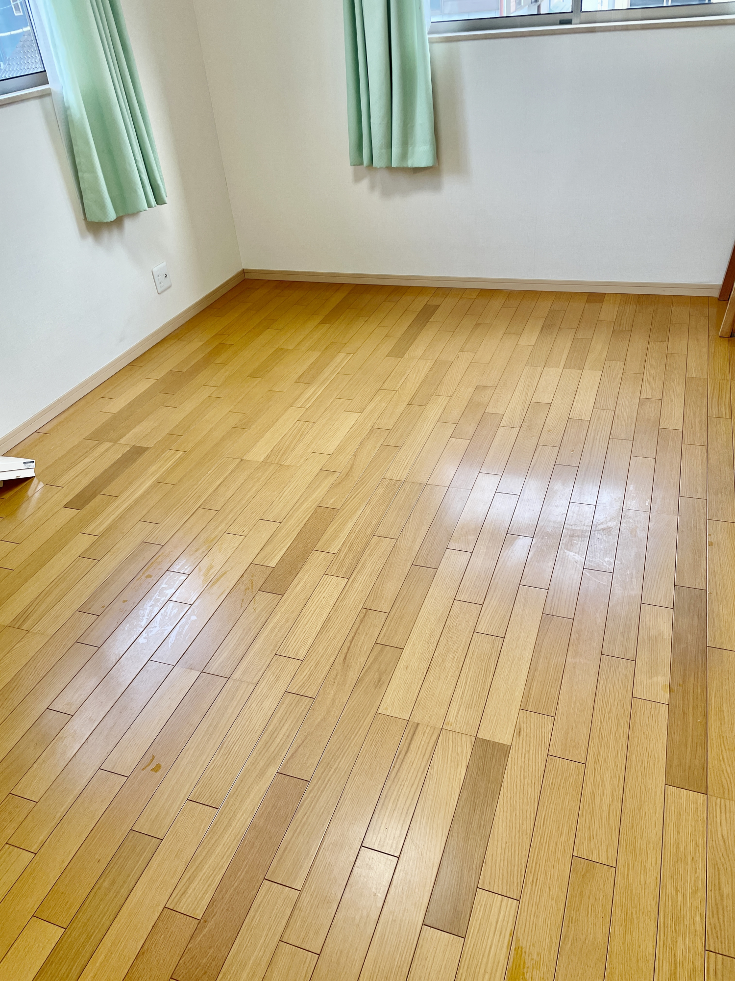 床をピカピカにしたら照明の明かりまで床に映りました^^
