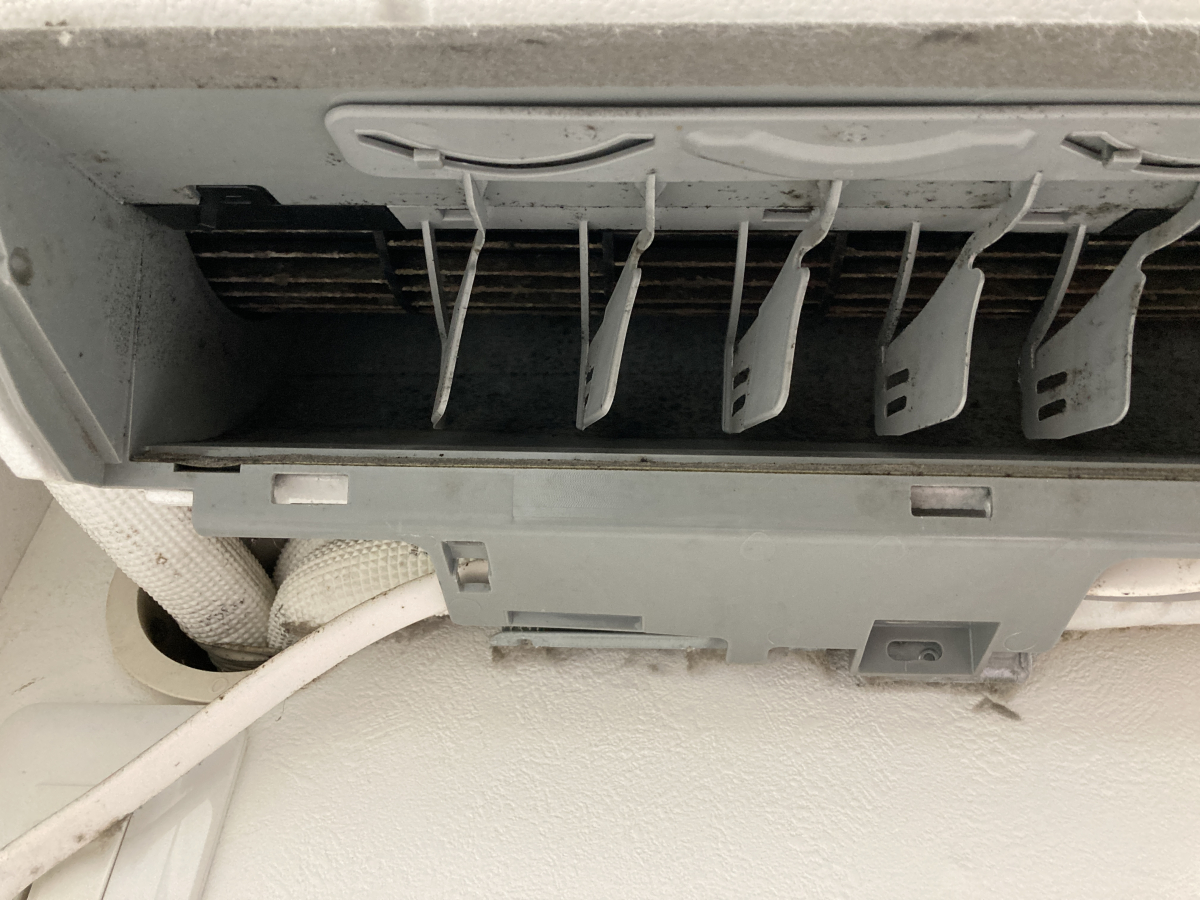 2016年製のエアコンになります、リビングルームで使用されているエアコンでしたので熱交換器にはほこりと油汚れが付着していました。