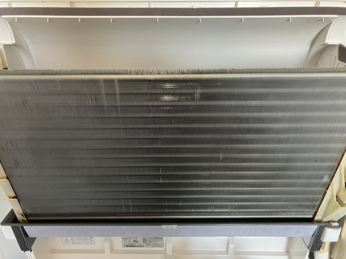床置きエアコンも壁掛けエアコンと同様に外側のパーツを分解して、熱交換器をむき出しの状態にして洗浄を行います。