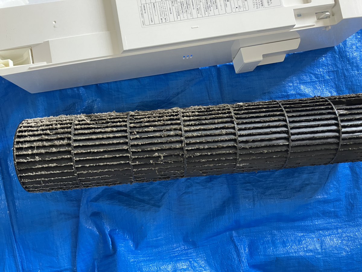 送風ファン自体もかなり汚れています、取外しができる送風ファンは洗浄後、新品同様に清潔な状態に戻せます。
