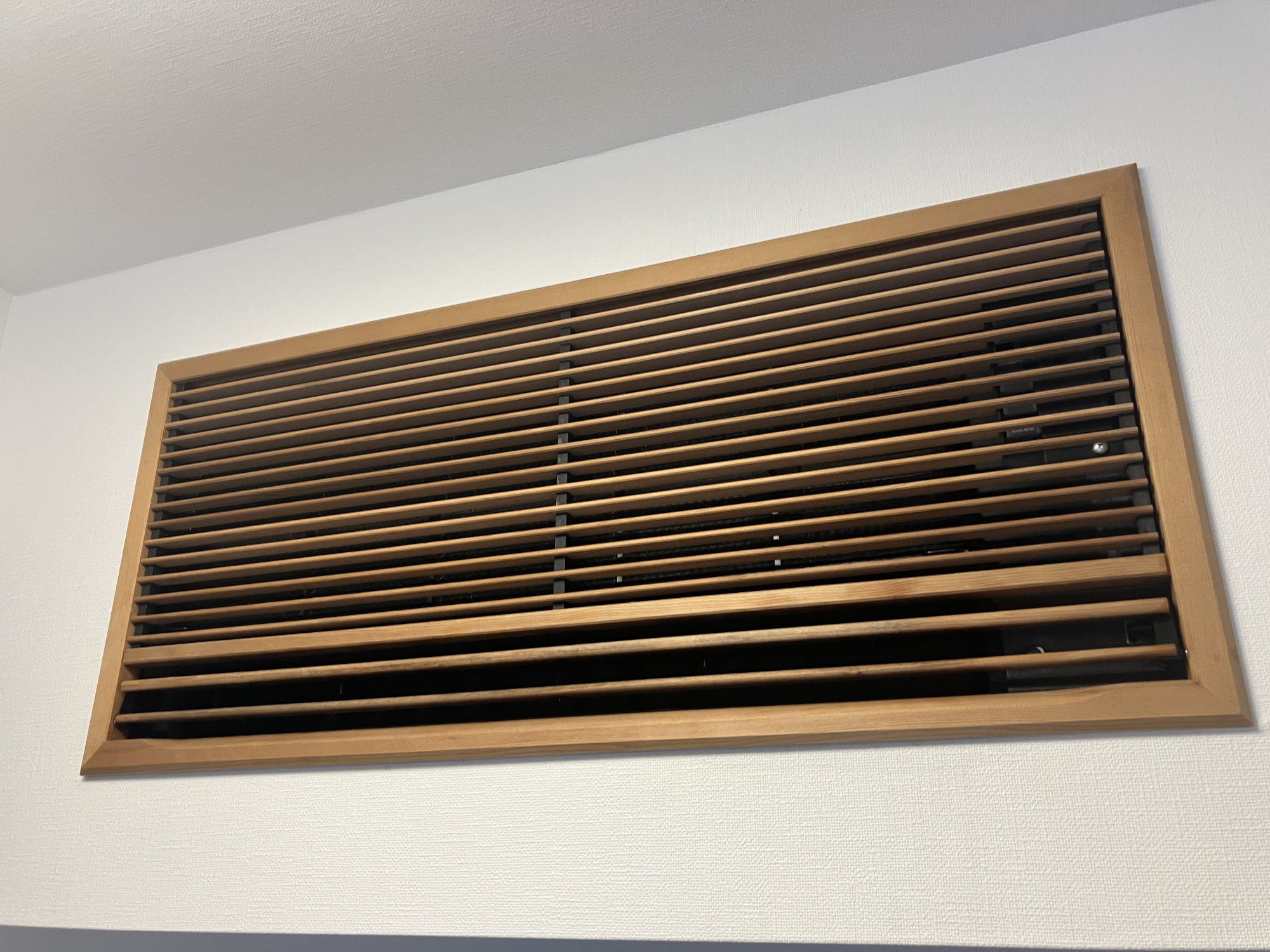 壁掛けエアコンとは異なり、室内機は壁の中にすっぽり収まっています。