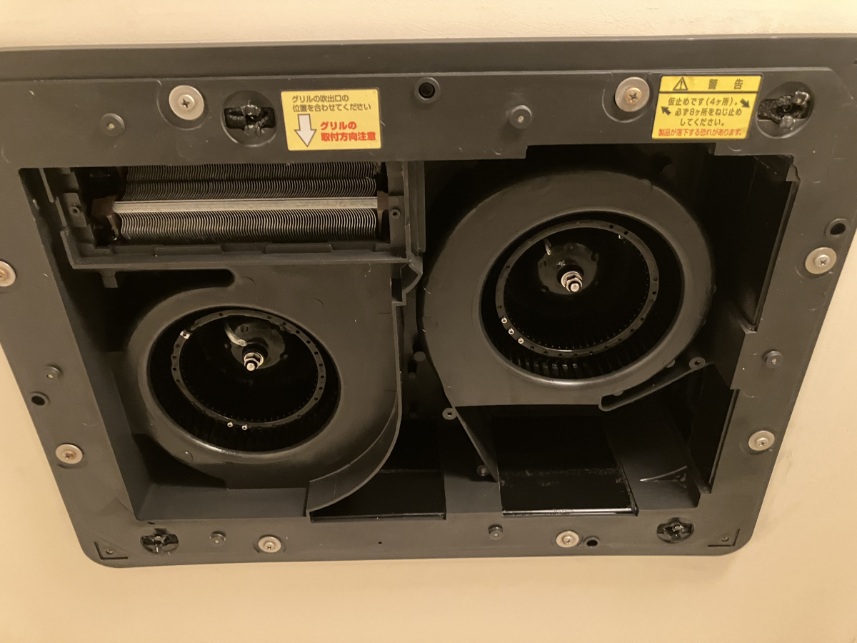 内部は室内の空気を排出するためのファンと室内に温風や涼風を送り込むファンと2種類配置されています。