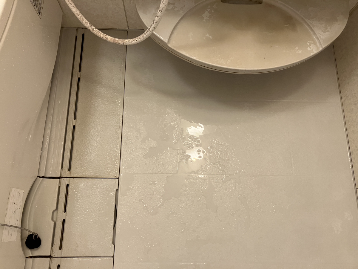 床面に近い部分には水垢汚れが層になってこびりついています。