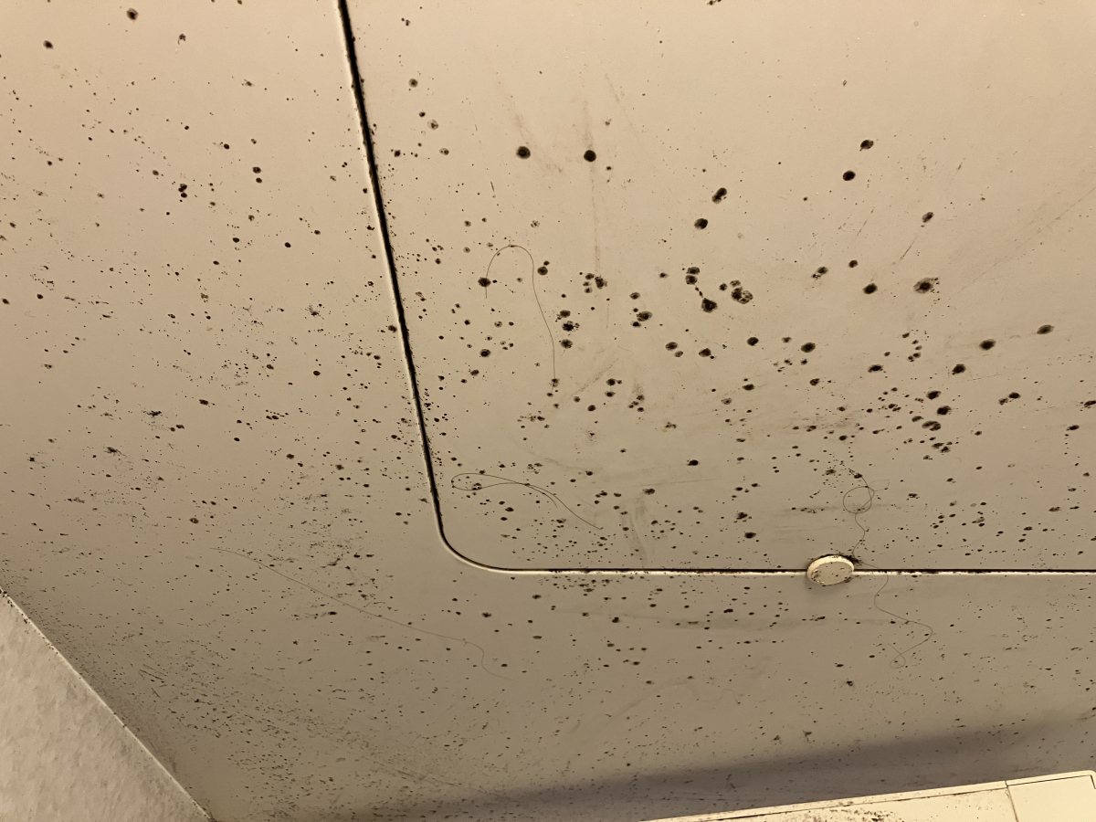 天井はかなり広範囲にカビ汚れが付着していました。
