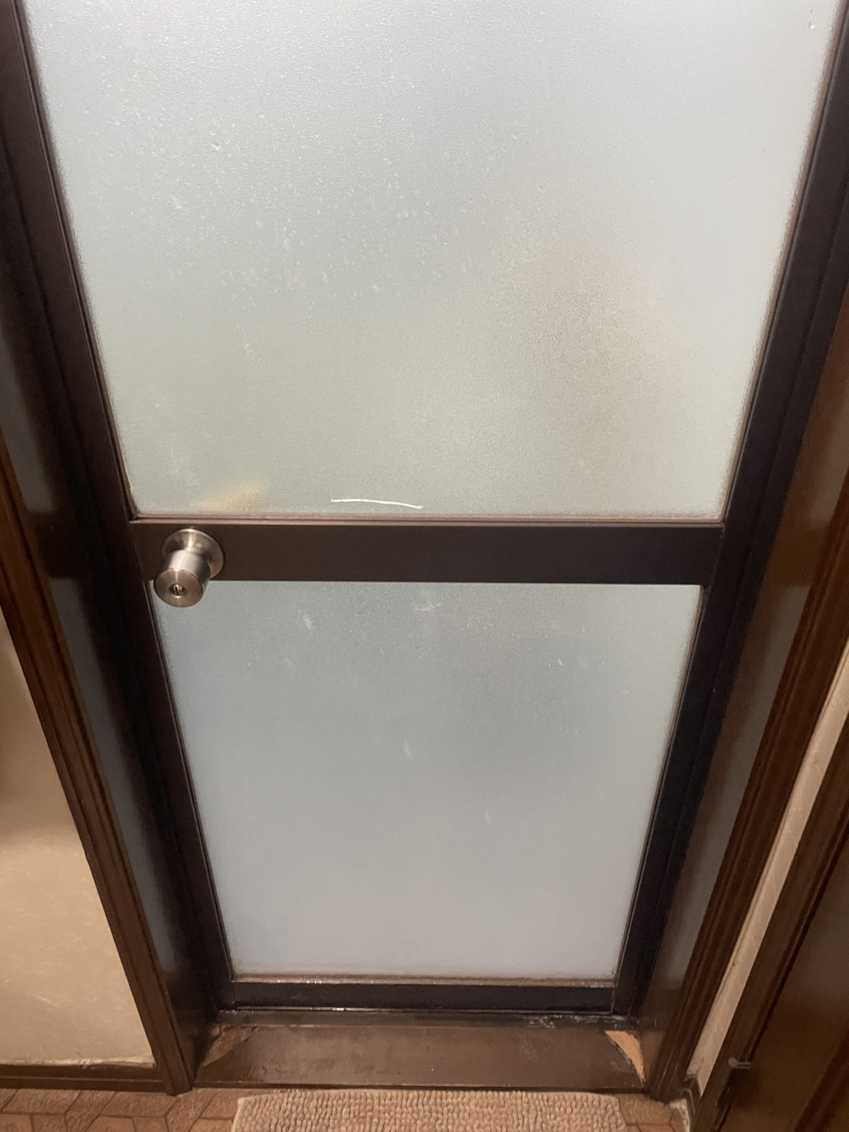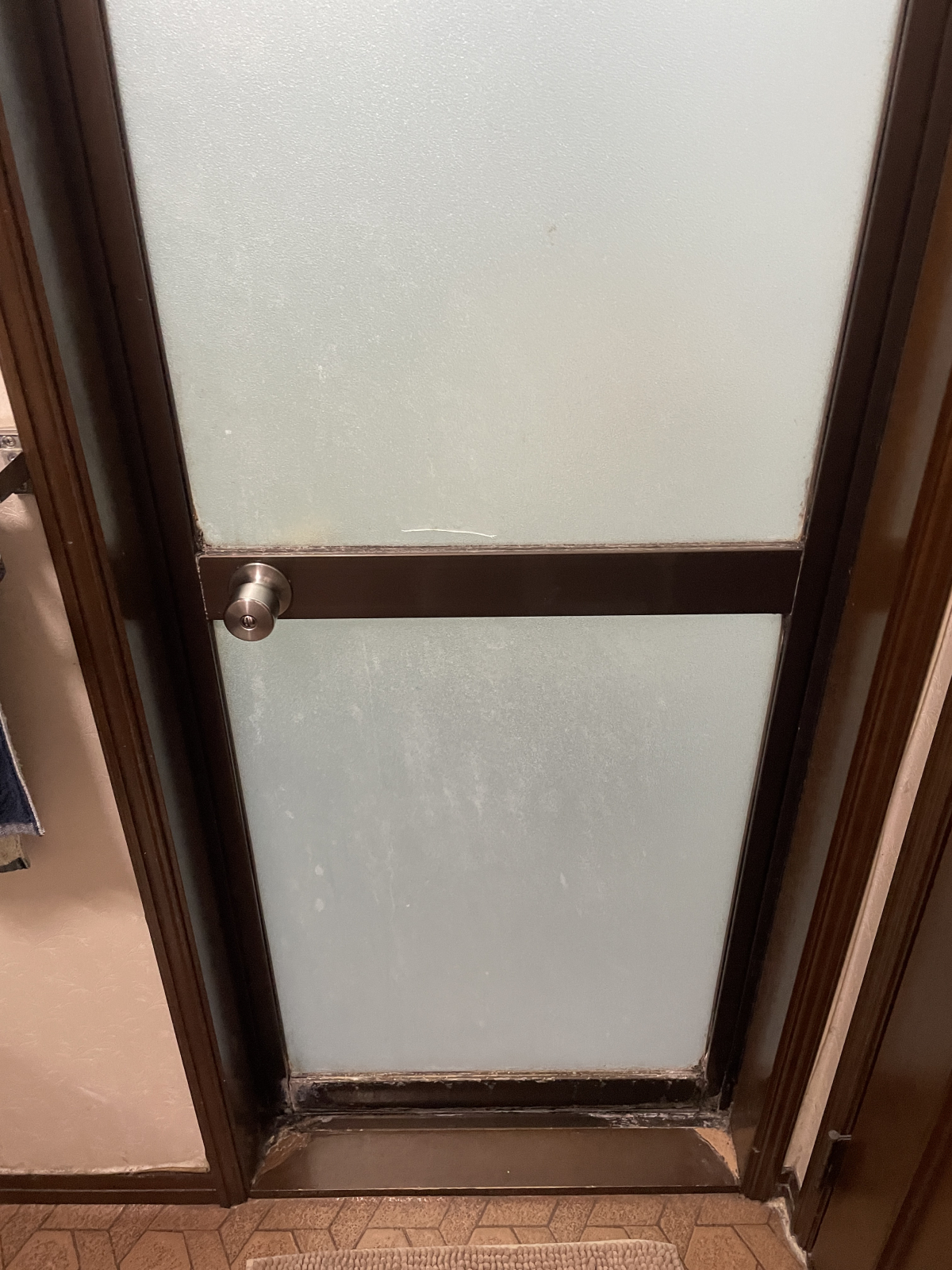 まずは、浴室ドアのカビと水垢落としから始めました。