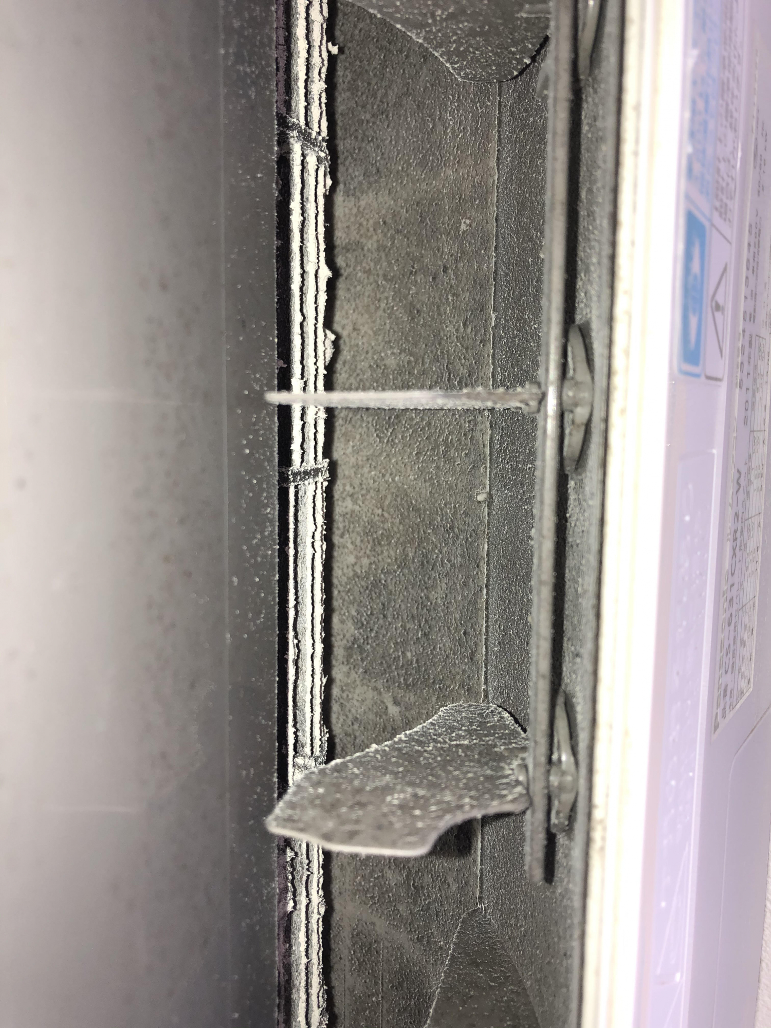 まずは、エプロン内部と浴室乾燥機内部の清掃です。普段はあまり見る事のない箇所だけに、汚れは相当に溜まっています。ホコリや石鹸カスなどの汚れに加えてお風呂場は高温多湿+暗所になりやすくカビの温床になってしまいます。エプロンカバーの取り外しと浴室乾燥機を分解してみると想像以上の汚れで、お客様も驚かれていました!次亜塩素酸系のカビ取り洗剤を中心にカビやこびり付いた汚れを落としてキレイになりました‼