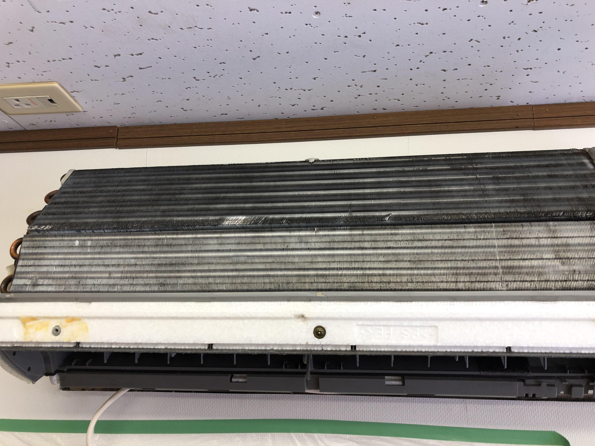 今日は、江東区森下と墨田区両国で『エアコンクリーニング+除菌』の作業を行ってまいりました。写真はその中の1台、ダイキン製の一般エアコンです。前回のエアコンクリーニング時期は不明ですが、相当年数経っていると思われるそうです。分解してみると汚れの付き方やアルミフィンの腐食具合からその様子が伺えました。アルミフィン・シロッコファンの洗浄をしてプラス除菌クリーニングをしっかりとおこない、1時間半程度の作業でキレイになりました!