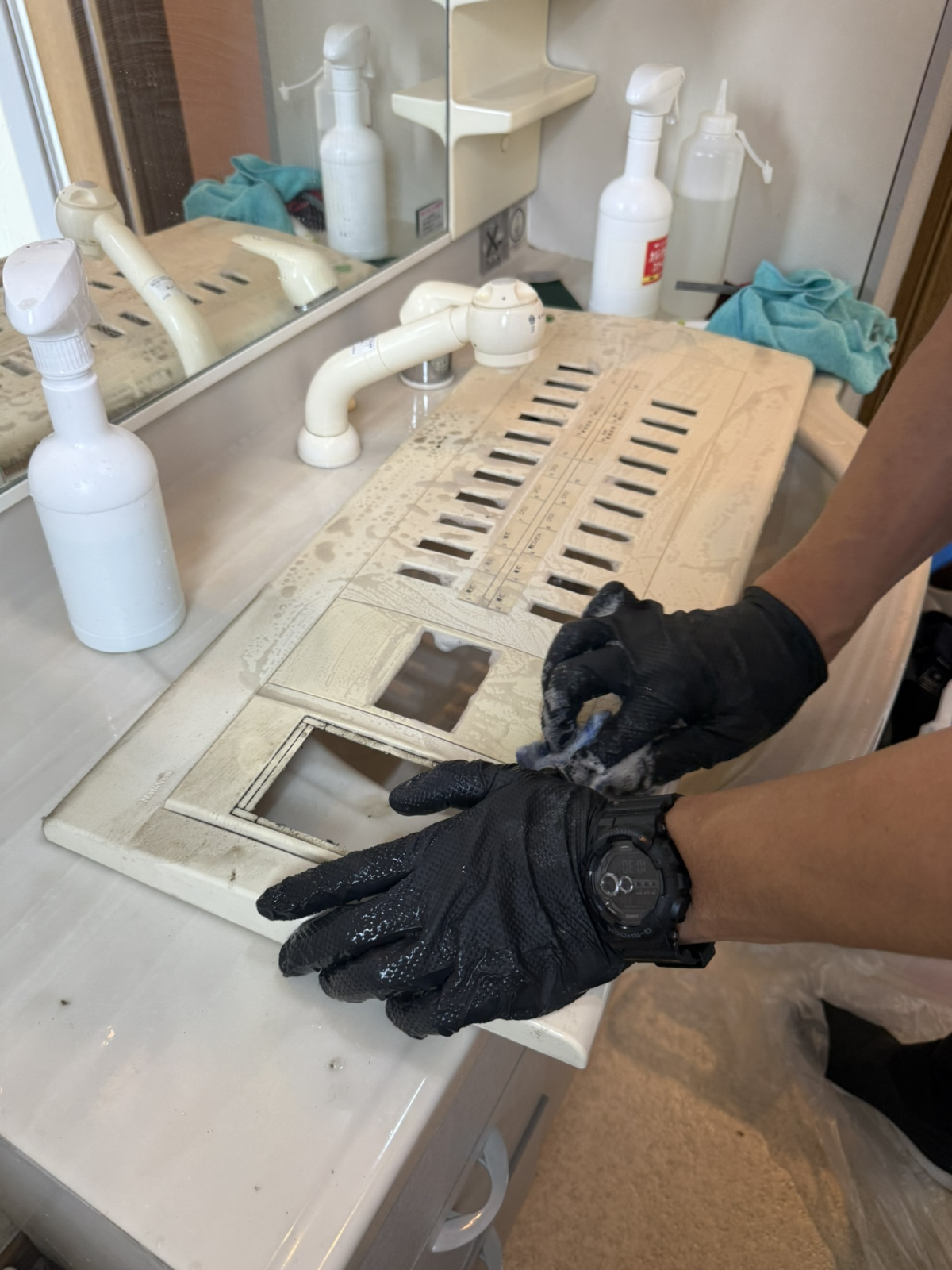 今回はその時の洗面所クリーニングの様子を一部ご紹介します。