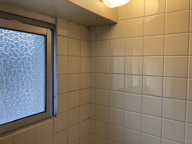 お風呂は昭和的なタイル張りのもので目地にはカビ汚れが!