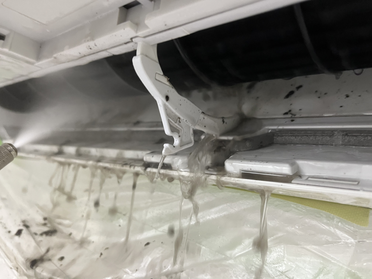 ここまでの大きなホコリはしっかり除去してから洗剤をかけてつけおき、高圧洗浄していきます!