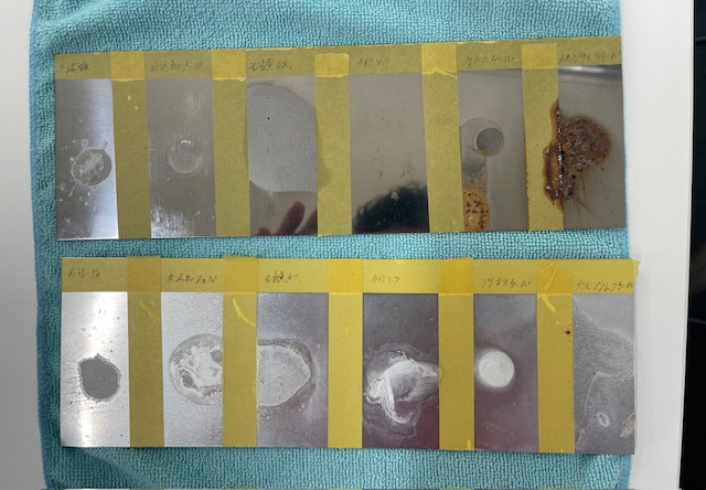 薬剤が対象面に与える影響を実際に実験で行っている様子で。