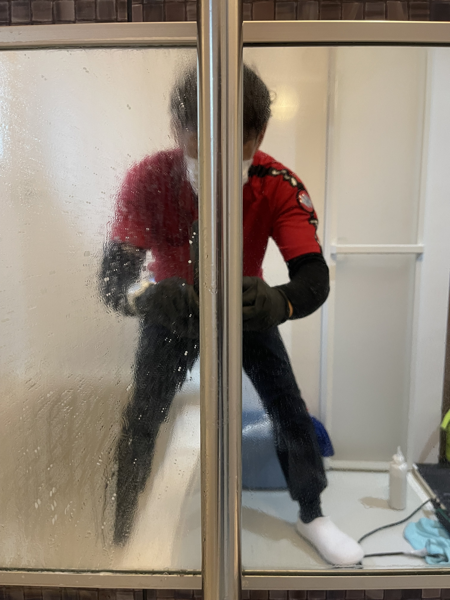 おそうじ革命京都右京西院店では、浴室鏡を新品同様にピカピカ✨に致します