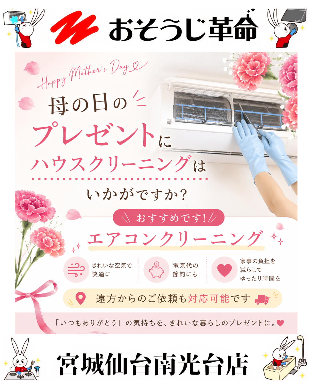 母の日のプレゼントにハウスクリーニングはいかがですか?