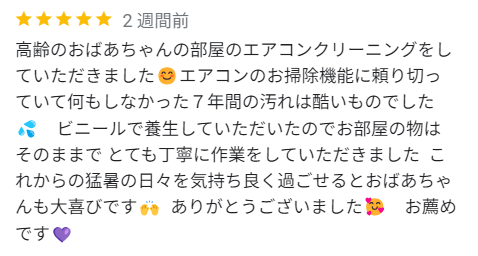 高齢のおばあちゃんの部屋のエアコンクリーニングをしていただきました????