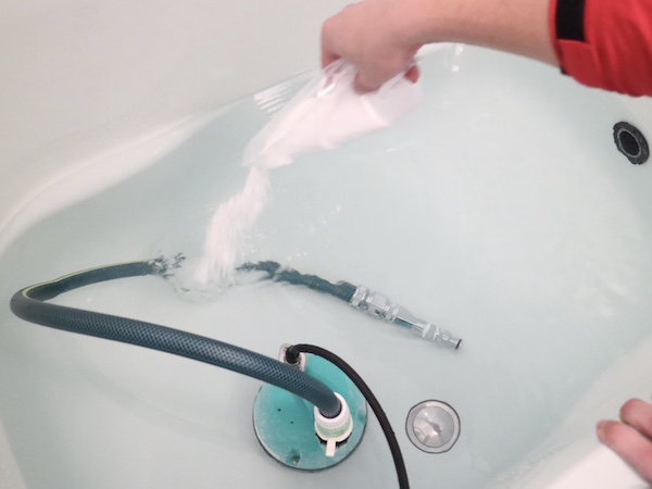 さらに湯ドロ除去剤を2回投入して、徹底的に洗浄します。