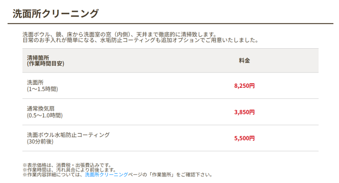 料金詳細一覧
