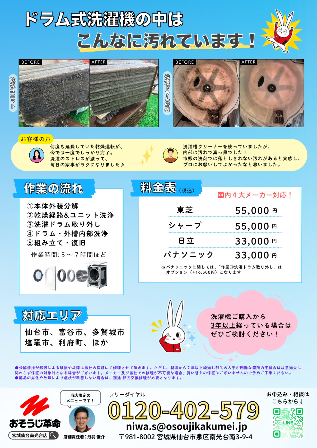 おそうじ革命 宮城仙台南光台店の丹羽です!