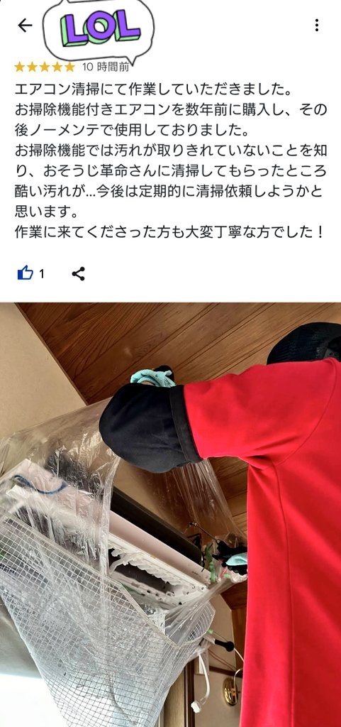 評価★★★★★ エアコン清掃にて作業していただきました。 お掃除機能付きエアコンを数年前に購入し、その後ノーメンテで使用しておりました。 お掃除機能では汚れが取りきれていないことを知...