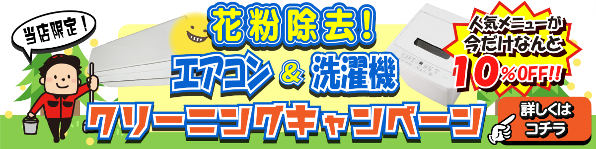 花粉除去!エアコン&洗濯機クリーニングキャンペーン!
