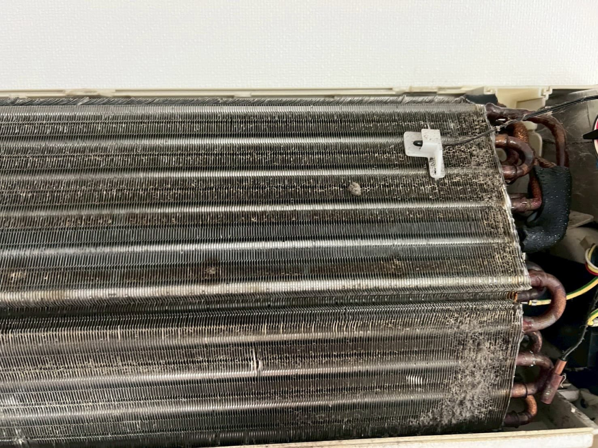 それがホコリや湿気と混ざってフィンの奥までこびりついている状態でした。