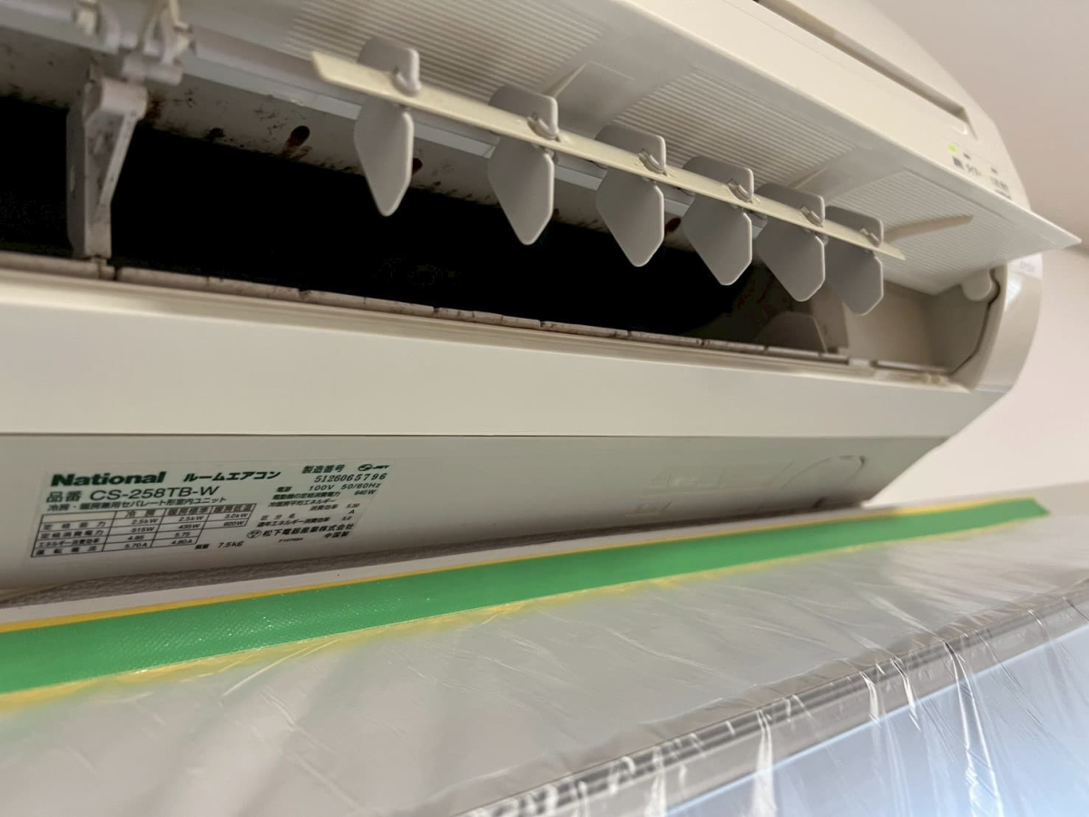 まずは外装カバー、フィルター、ルーバーなどを丁寧に取り外し、